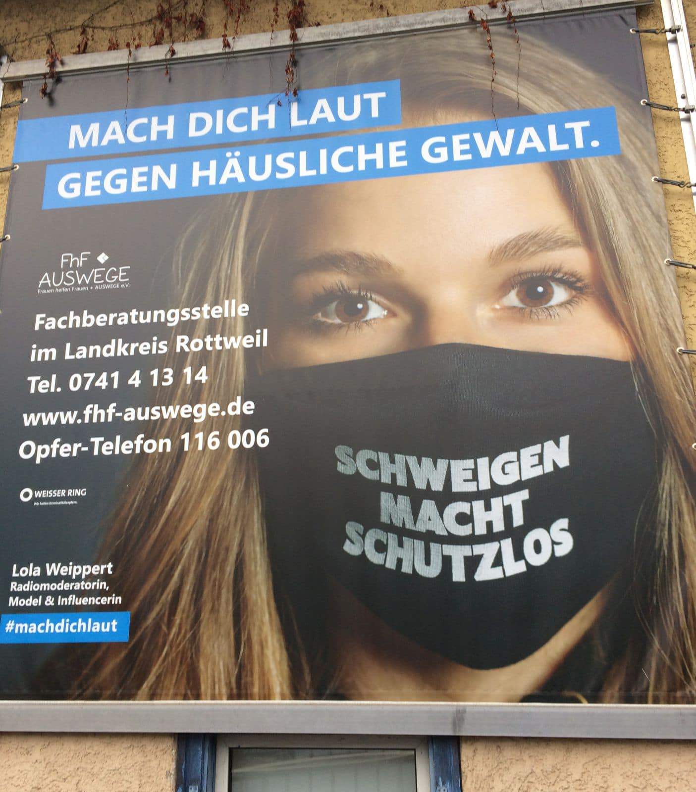 Inzwischen ist der Podcast produziert. Neben vier Buchvorstellungen (siehe Info) stellt Barbara Olowinsky die Arbeit des Frauenbeirats, aber auch von Frauen helfen Frauen & Auswege vor. Besonders auf die Aktion des Weißen Rings „Schweigen macht schutzlos“ mit den „machdichstark“ Bannern und Plakaten geht sie ein. Darauf zu sehen Foto von Radiomoderatorin, Influenzerin und Model Lola Weippert.
