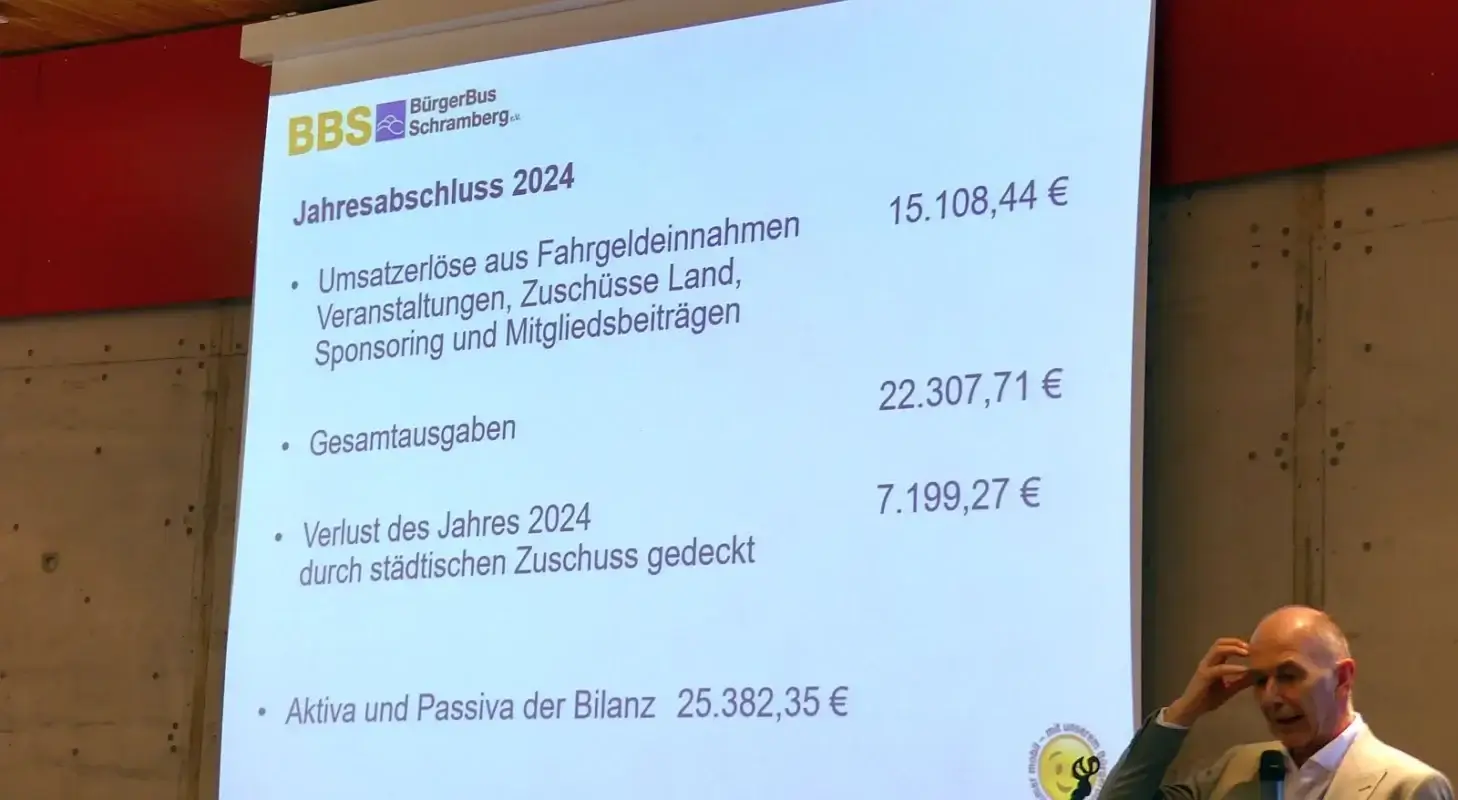 Die Beschaffung des neuen Busses sei schwierig gewesen. Die Forderung des Gemeinderates, ein E-Fahrzeug zu kaufen, sei leider „nicht machbar gewesen“. Solche Fahrzeuge seien nicht verfügbar. Es gebe „bis heute keinen zugelassenen Bürgerbus in Elektro.“ Der Verein benötige einen Niederflurbus, sonst bekomme man keine Förderung.