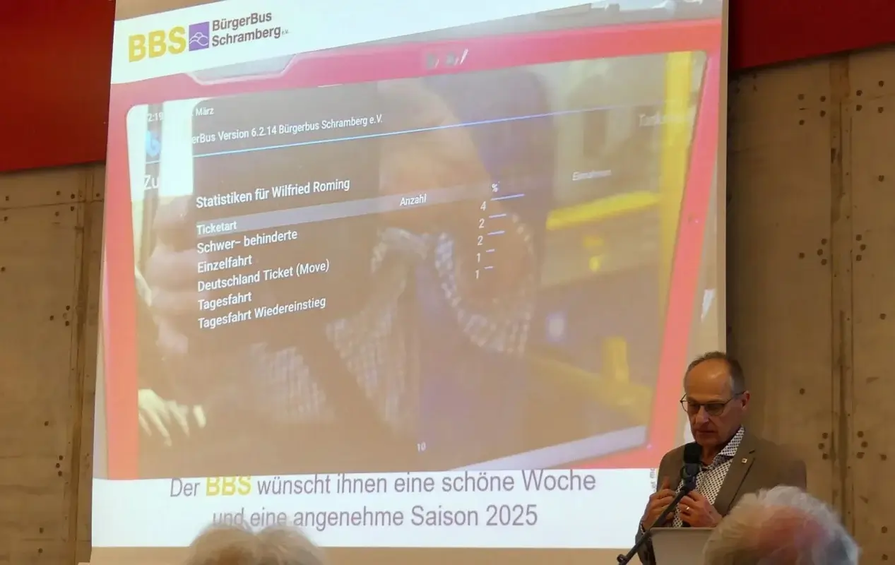 Winfried Roming, Göllers erster Stellvertreter, berichtete über den neuen Bus, er fahre problemlos, abgesehen von einigen „Kinderkrankheiten“. Mit einem neuen System auf einem Tablett könnten die Fahrerinnen und Fahrer nun die Fahrgastzahlen festhalten. Die Software zeige auch die Haltestellen an und ob man in der Fahrzeit sei. Die Bedienung sei relativ einfach. Göller ergänzte: „Wer telefonieren kann, kann das auch bedienen.“
