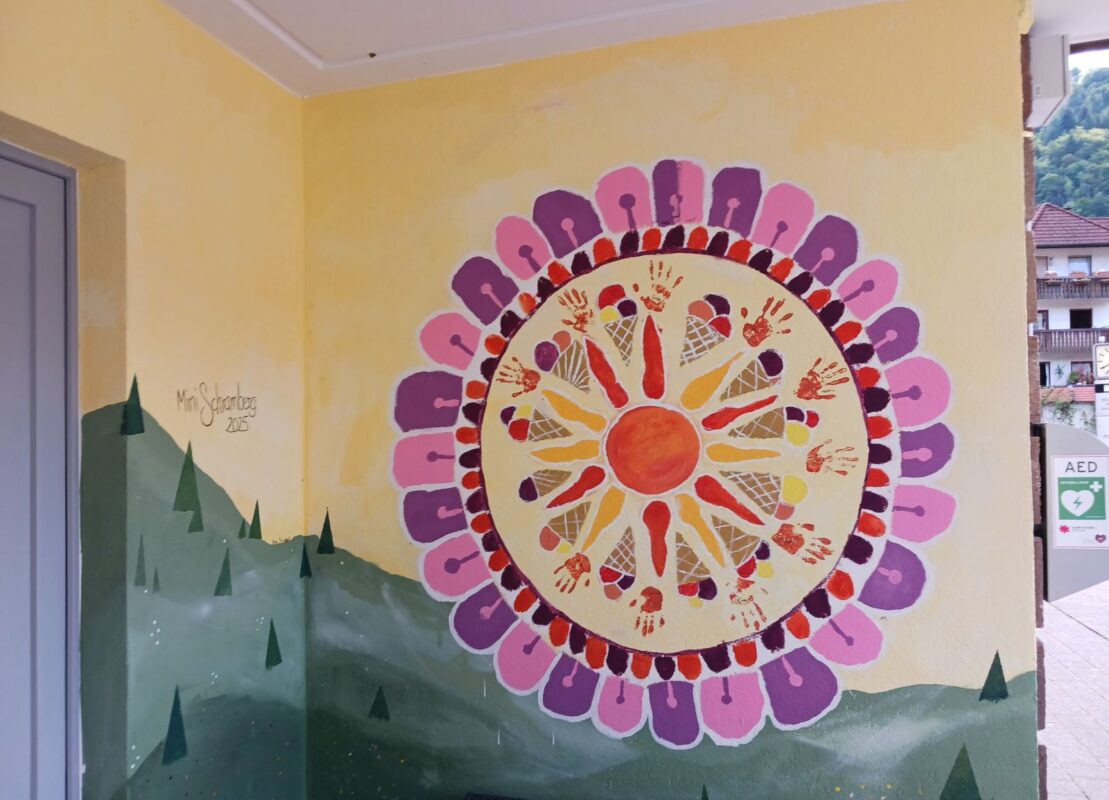 Eine weniger erfreuliche Geschichte hat sich an der Bushaltestelle am paradiesplatz ereignet: Während Minischramberg hatten Kinder die dortige Haltestelle im Paradies-Gebäude kunstvoll ausgestaltet. Auf der einen Seite mit Tieren, auf der anderen mit einem großen Rundgemälde.