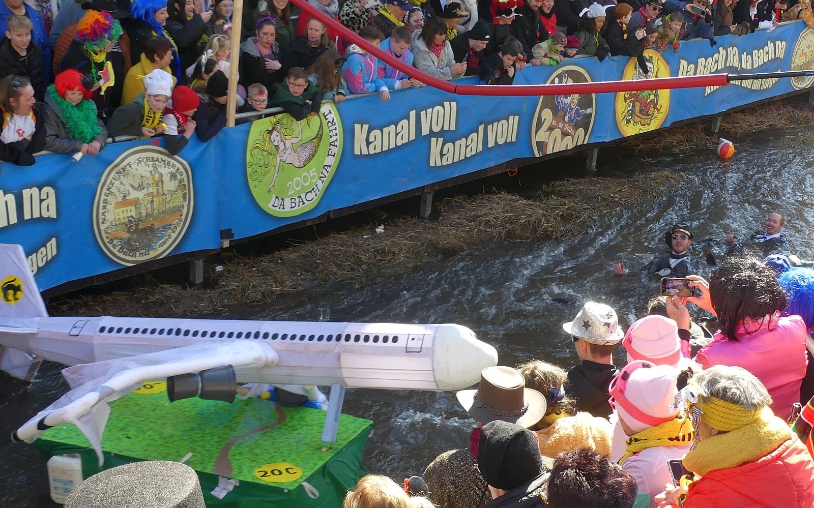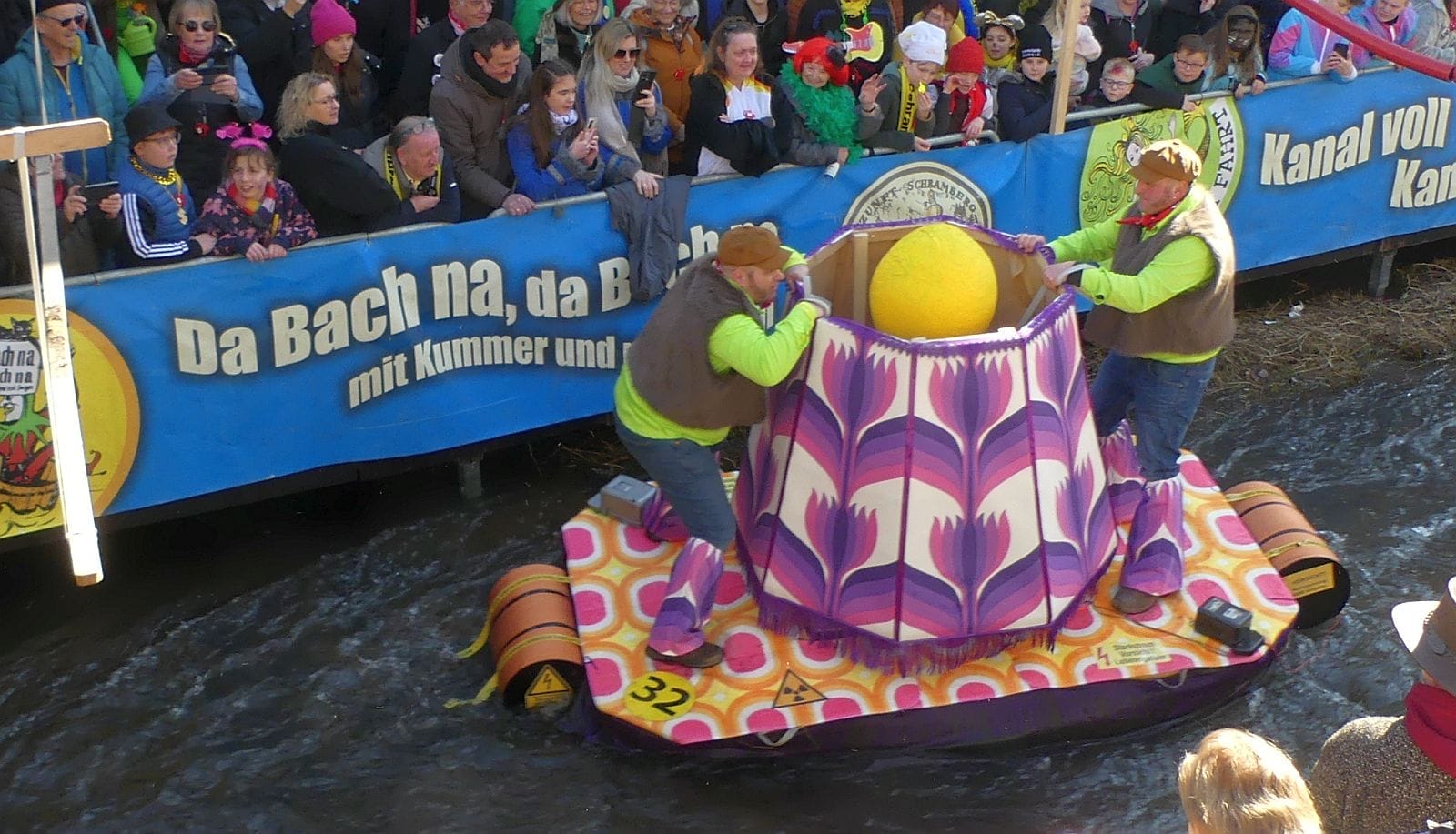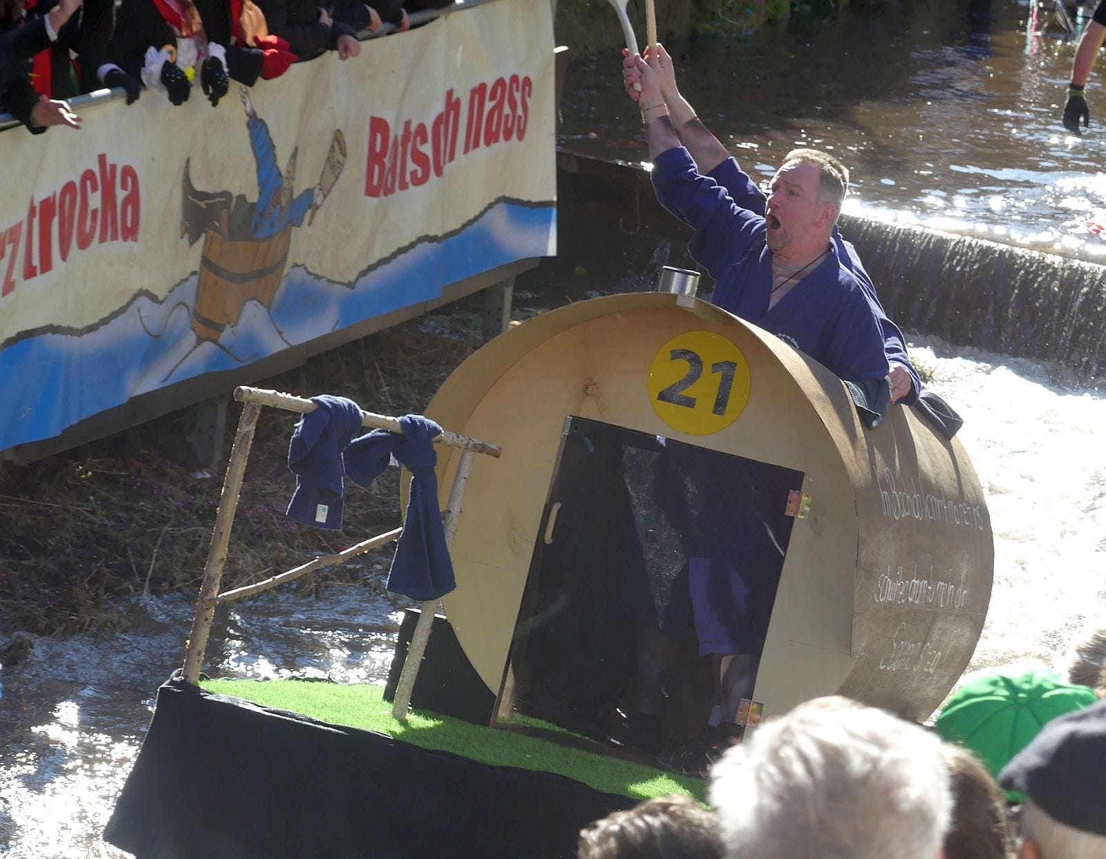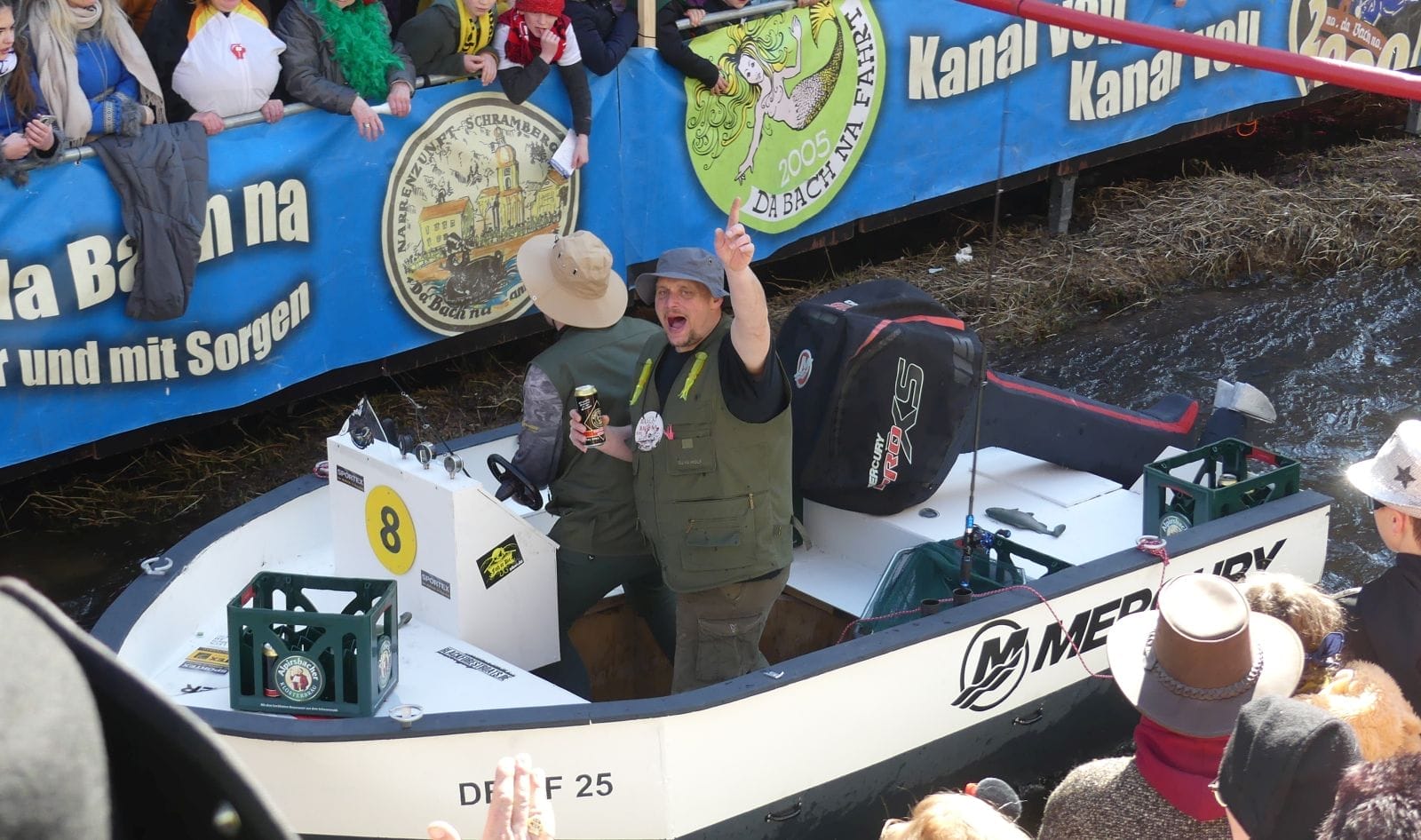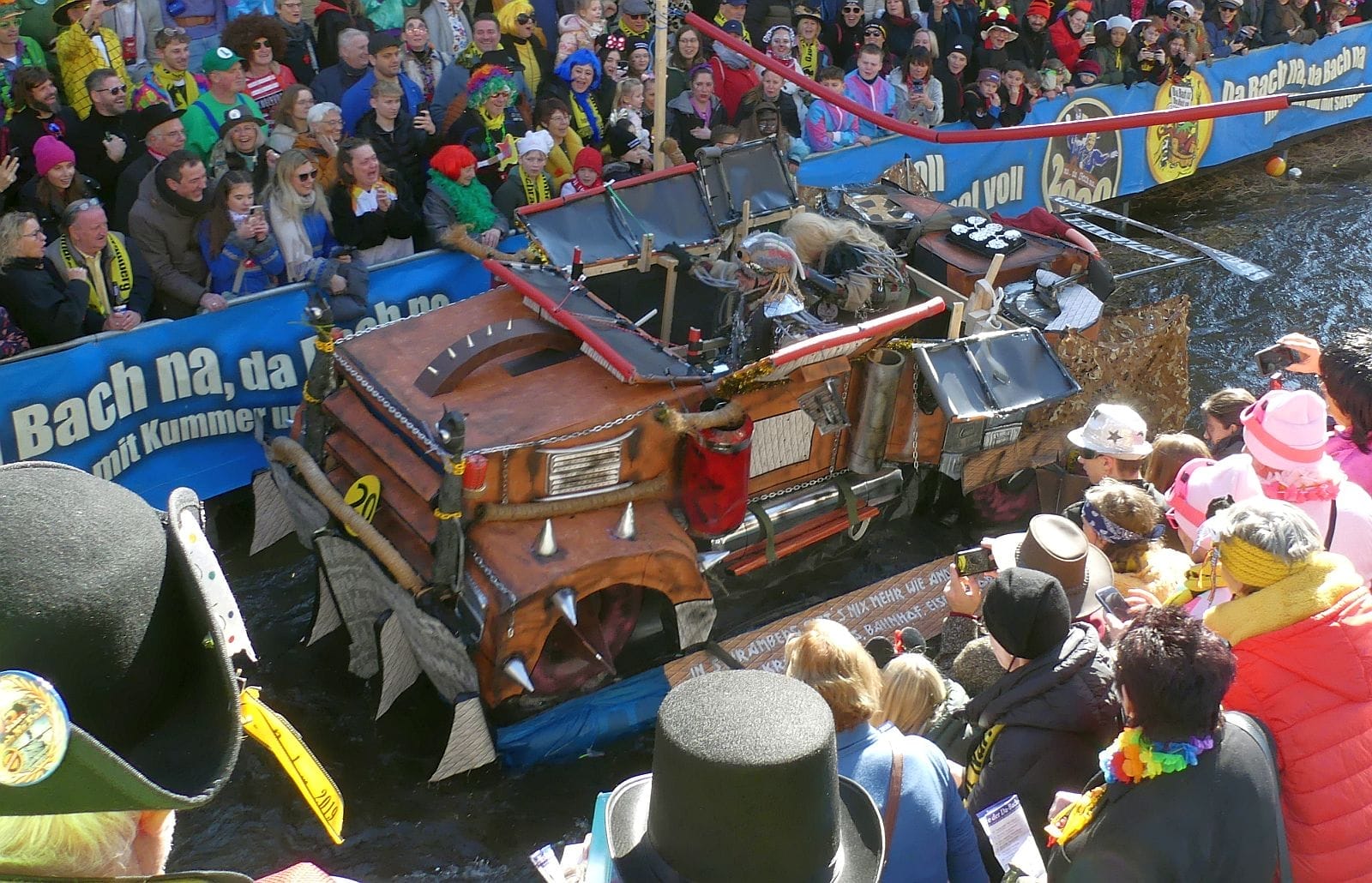 Die Da- Bach-Na-Fahr war wieder ein tolles Erlebnis. Bei vier grad Wassertemperatur, die Sprecher Hettich bekannt gab, vermieden die meisten das freiwillige Bad im Kirchenbach. Schrambergs OBine schaffte es und kam furztrocka ins Ziel. Nach knapp einer Stunde hatten es alle ins Ziel geschafft – irgendwie halt, furz-trocka oder batsch-nass. Natürlich gabs auch wieder einen Schwarzfahrer und die Stadtmusik vorneweg in Gummibootle. In unserer Galerie am Schluss, warum auch immer. Sagen wir, es war die KI, oder Trump oder die Ampel. „Ich doch ned…“