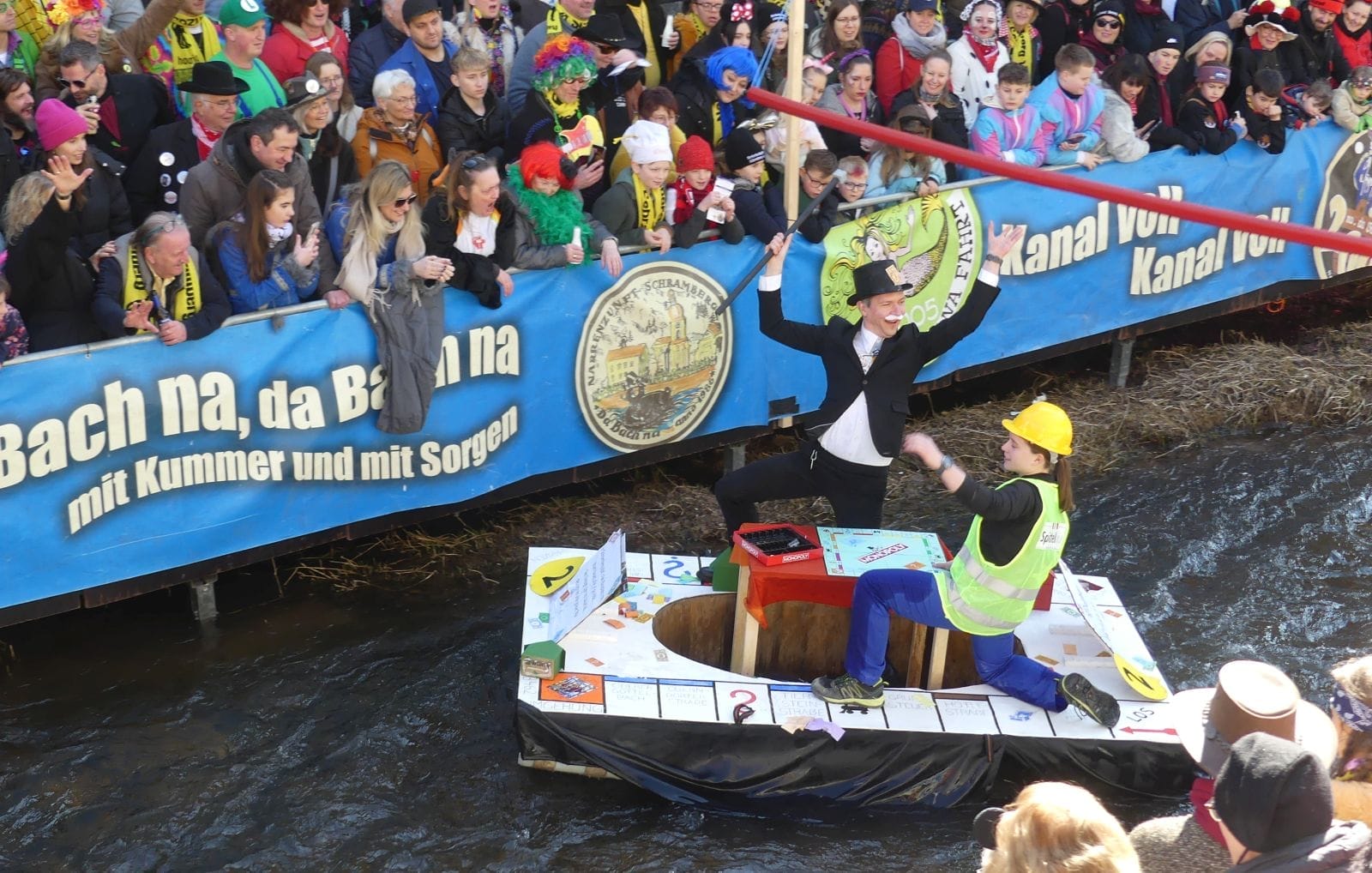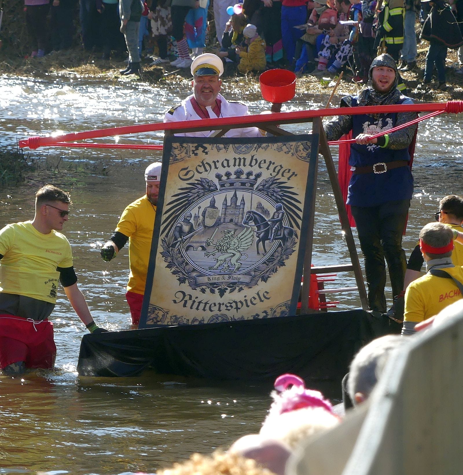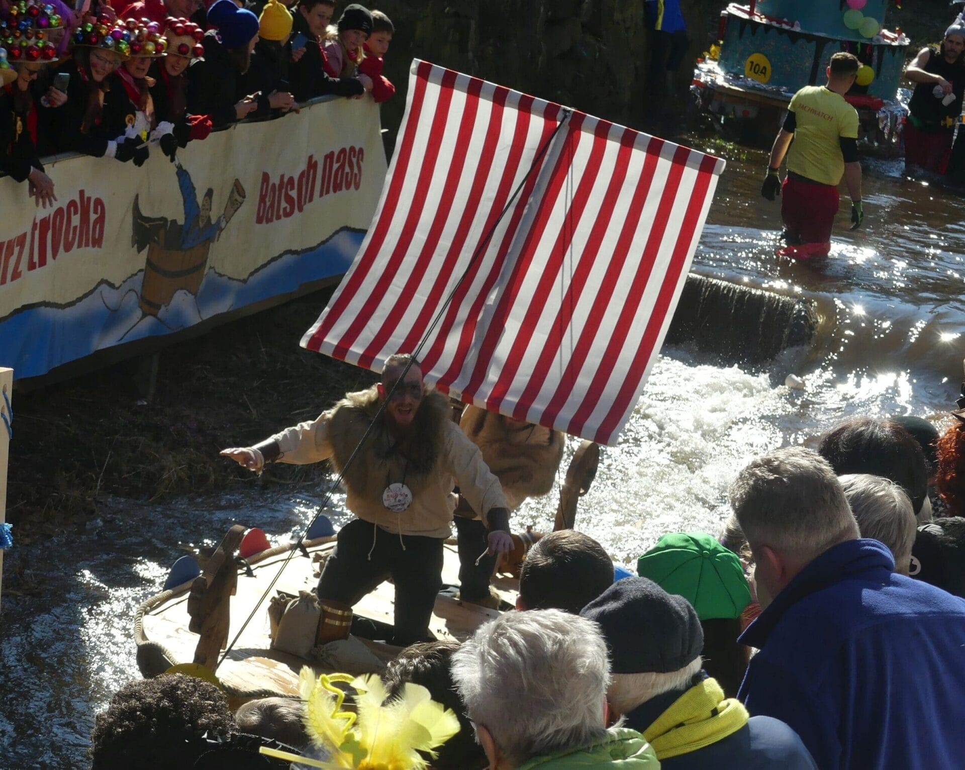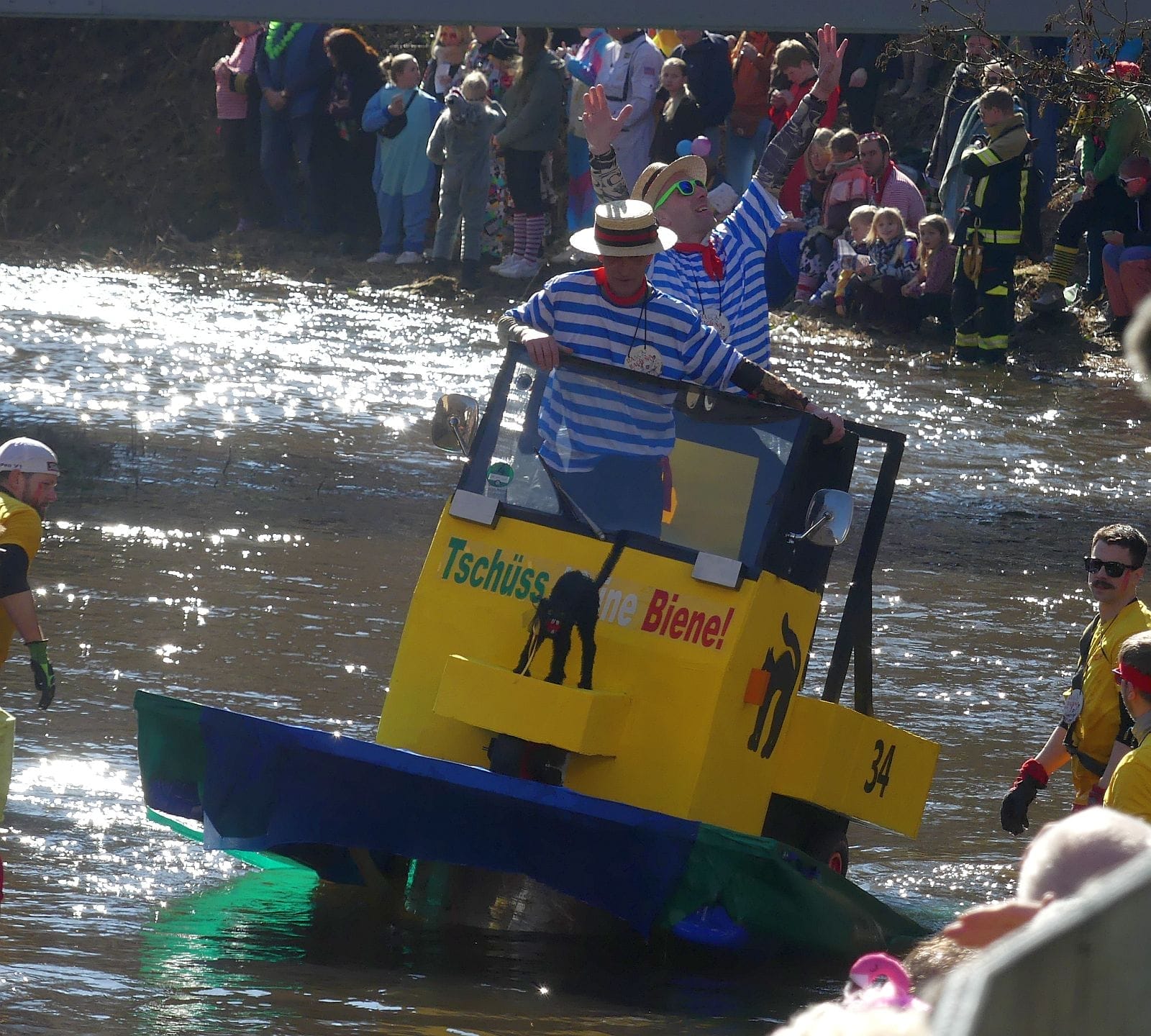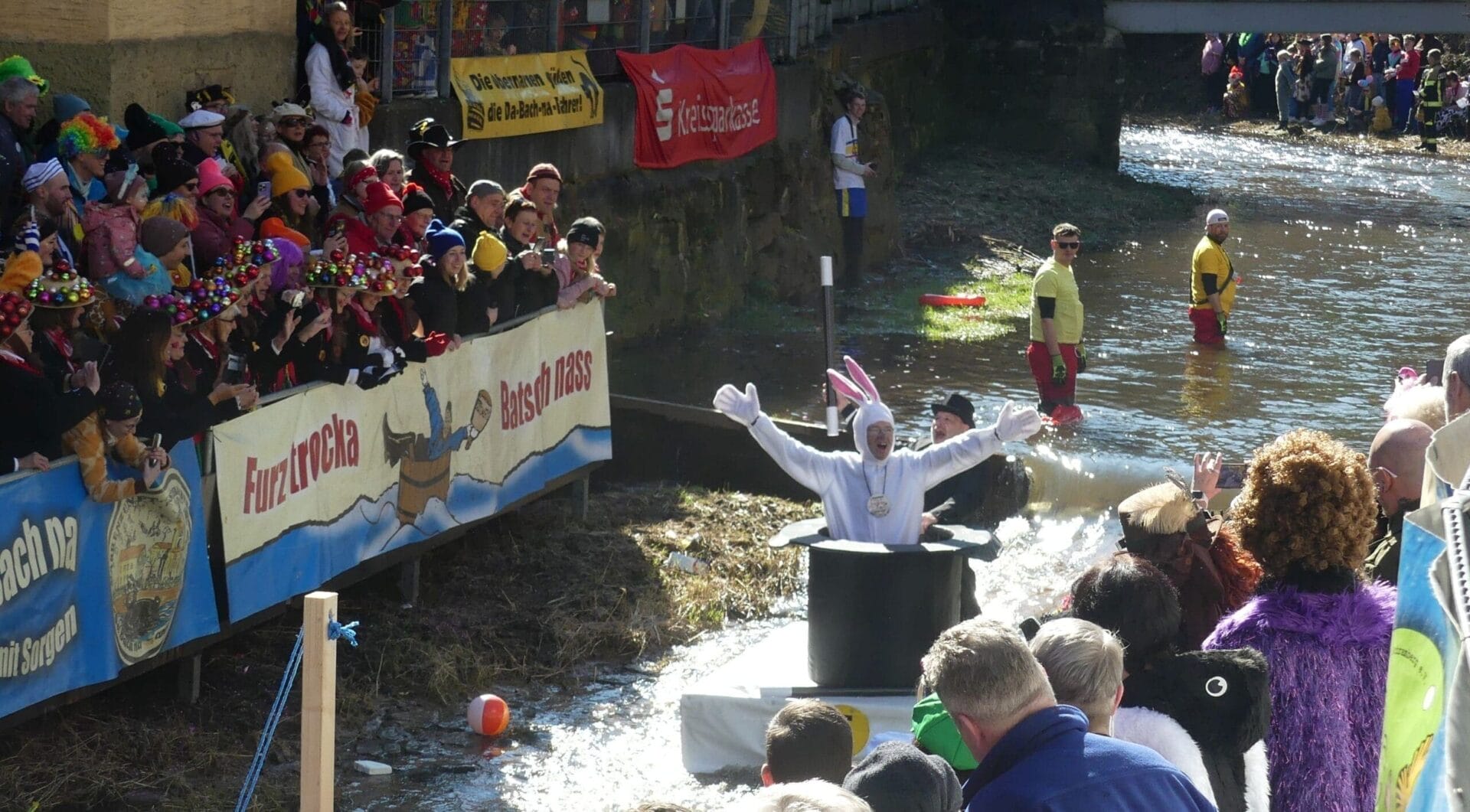 Die Da- Bach-Na-Fahr war wieder ein tolles Erlebnis. Bei vier grad Wassertemperatur, die Sprecher Hettich bekannt gab, vermieden die meisten das freiwillige Bad im Kirchenbach. Schrambergs OBine schaffte es und kam furztrocka ins Ziel. Nach knapp einer Stunde hatten es alle ins Ziel geschafft – irgendwie halt, furz-trocka oder batsch-nass. Natürlich gabs auch wieder einen Schwarzfahrer und die Stadtmusik vorneweg in Gummibootle. In unserer Galerie am Schluss, warum auch immer. Sagen wir, es war die KI, oder Trump oder die Ampel. „Ich doch ned…“