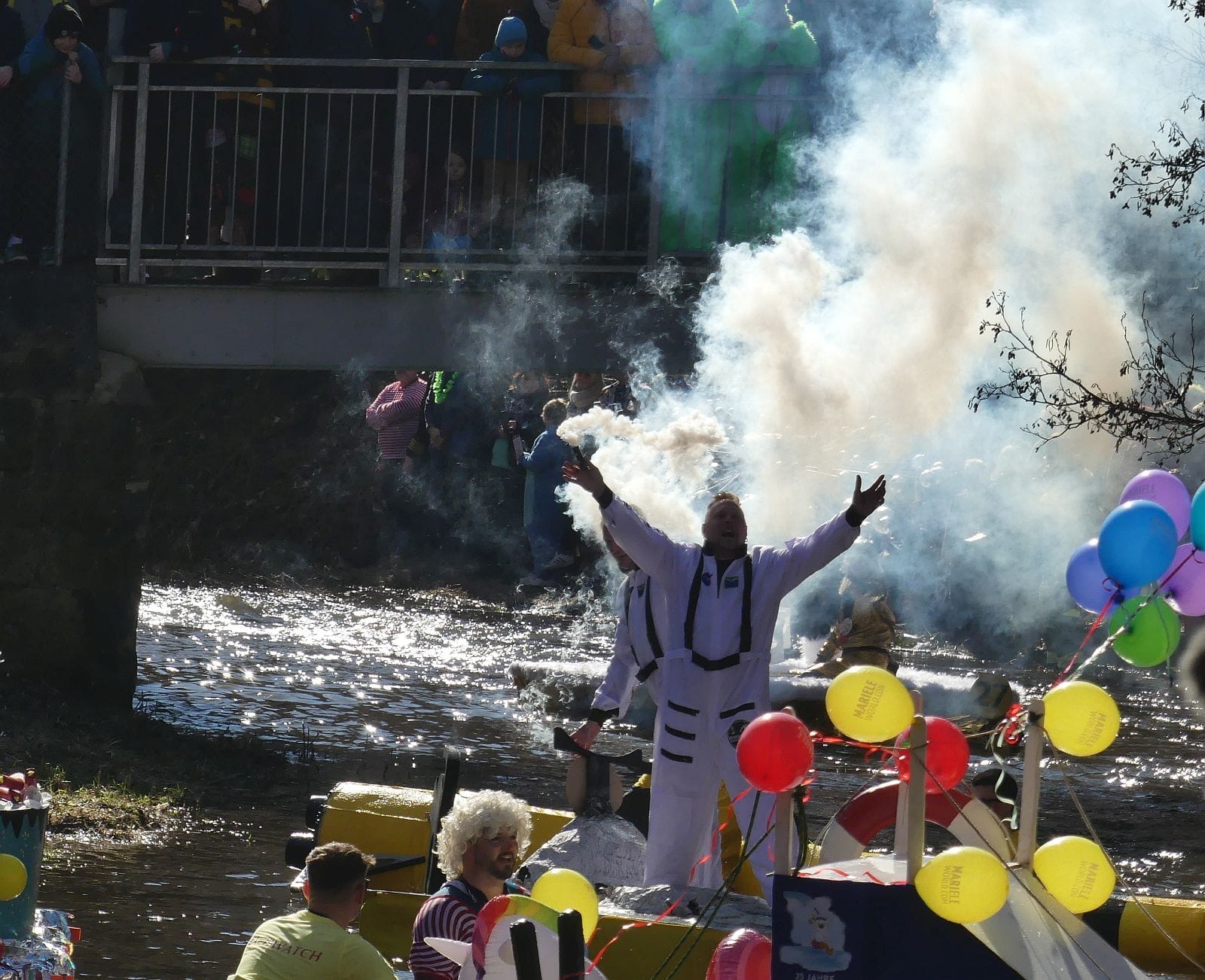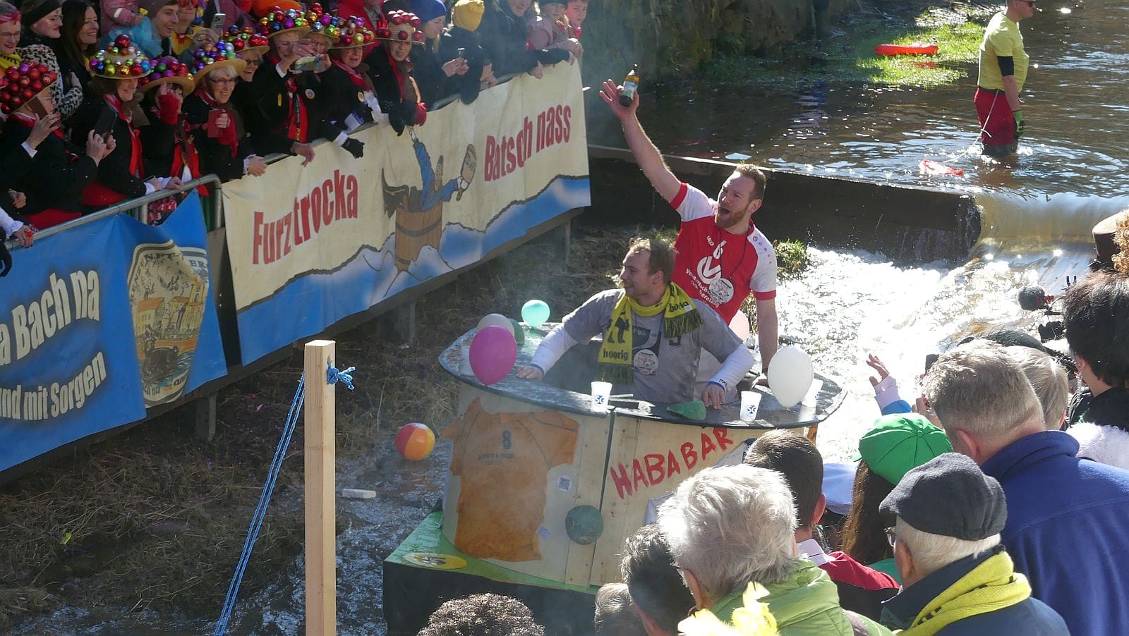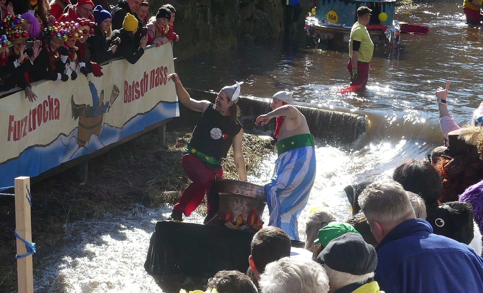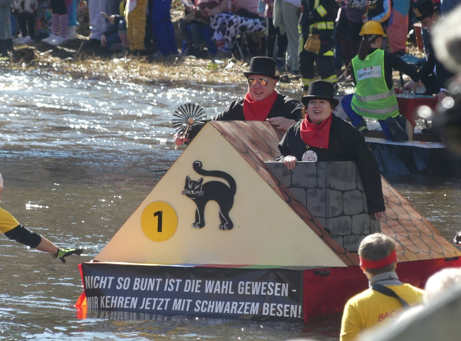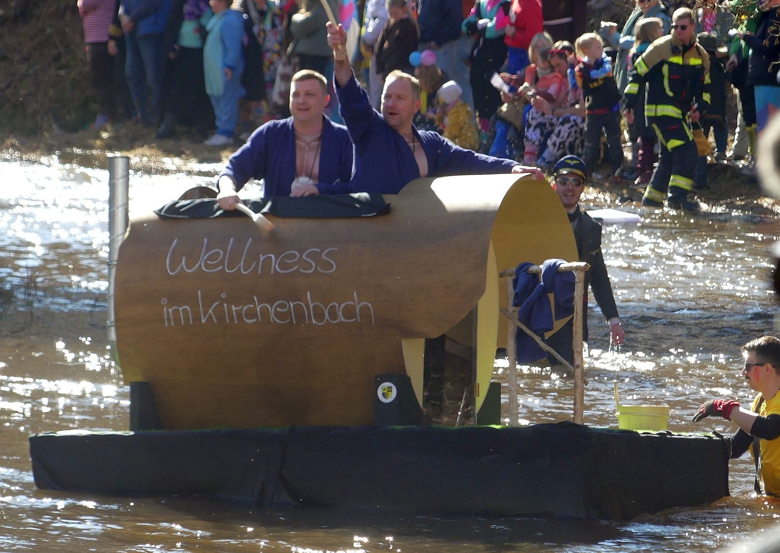 Die Da- Bach-Na-Fahr war wieder ein tolles Erlebnis. Bei vier grad Wassertemperatur, die Sprecher Hettich bekannt gab, vermieden die meisten das freiwillige Bad im Kirchenbach. Schrambergs OBine schaffte es und kam furztrocka ins Ziel. Nach knapp einer Stunde hatten es alle ins Ziel geschafft – irgendwie halt, furz-trocka oder batsch-nass. Natürlich gabs auch wieder einen Schwarzfahrer und die Stadtmusik vorneweg in Gummibootle. In unserer Galerie am Schluss, warum auch immer. Sagen wir, es war die KI, oder Trump oder die Ampel. „Ich doch ned…“