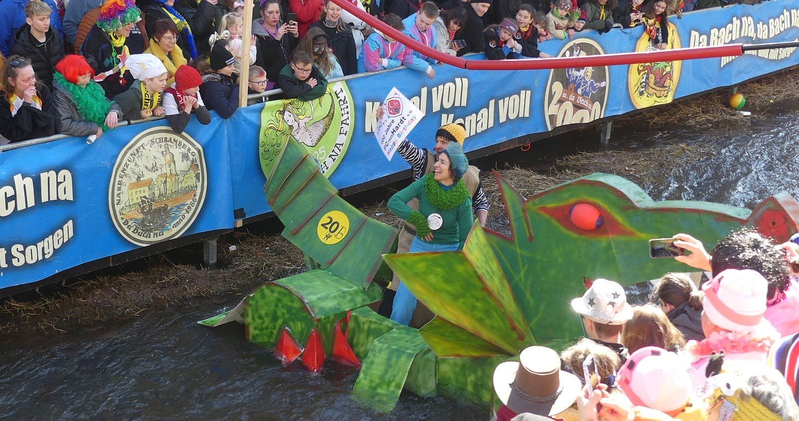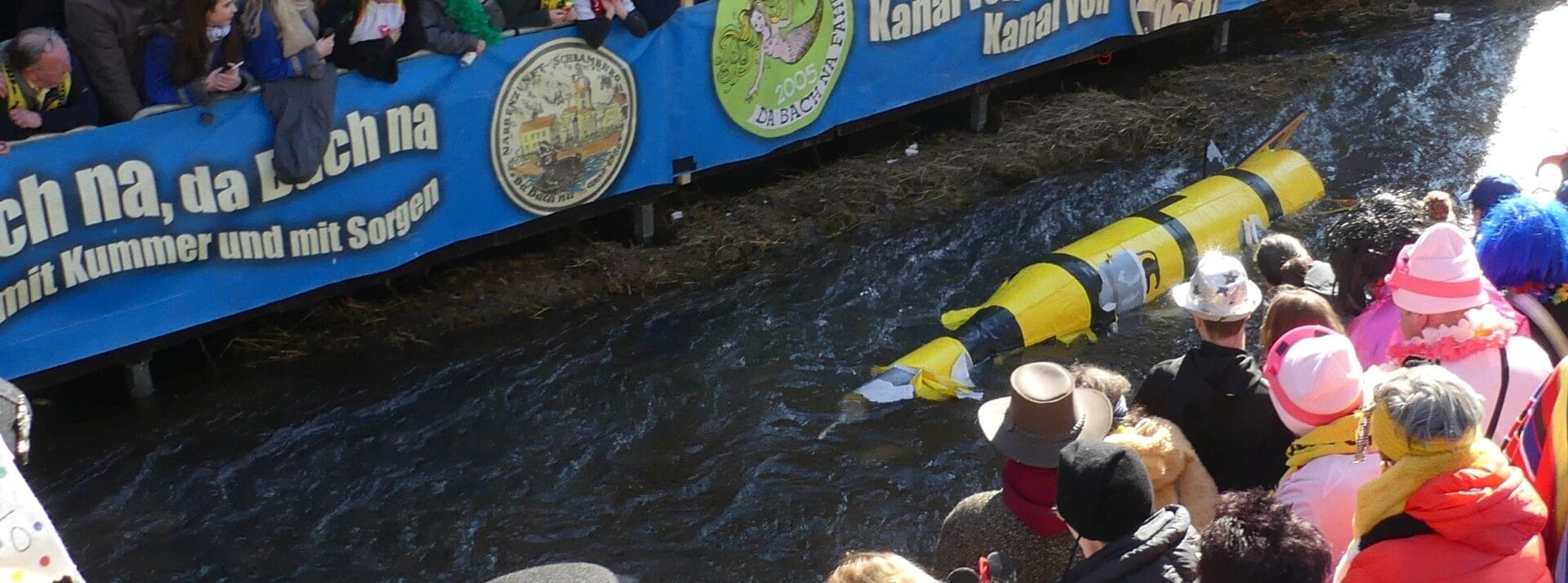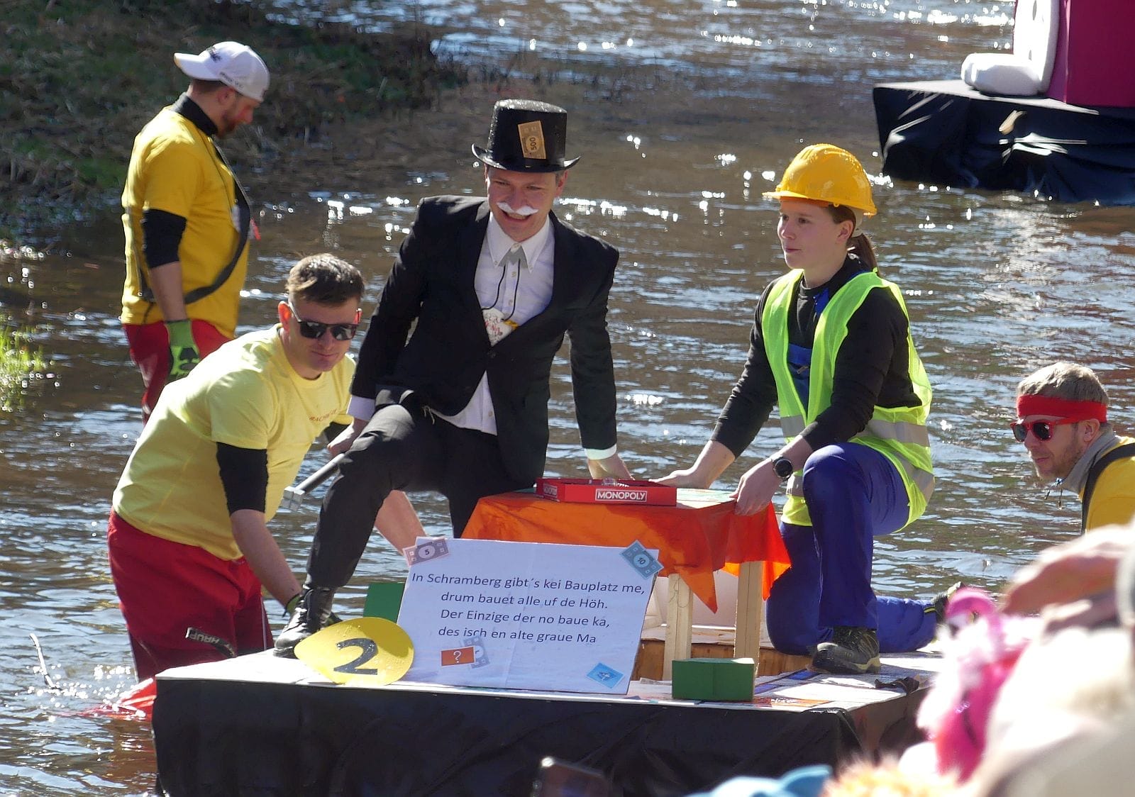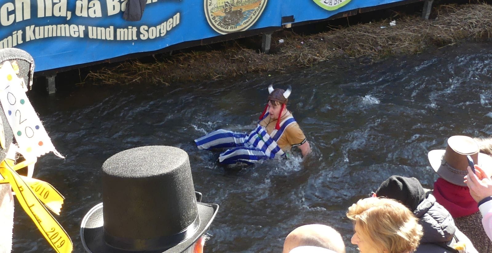 Die Da- Bach-Na-Fahr war wieder ein tolles Erlebnis. Bei vier grad Wassertemperatur, die Sprecher Hettich bekannt gab, vermieden die meisten das freiwillige Bad im Kirchenbach. Schrambergs OBine schaffte es und kam furztrocka ins Ziel. Nach knapp einer Stunde hatten es alle ins Ziel geschafft – irgendwie halt, furz-trocka oder batsch-nass. Natürlich gabs auch wieder einen Schwarzfahrer und die Stadtmusik vorneweg in Gummibootle. In unserer Galerie am Schluss, warum auch immer. Sagen wir, es war die KI, oder Trump oder die Ampel. „Ich doch ned…“