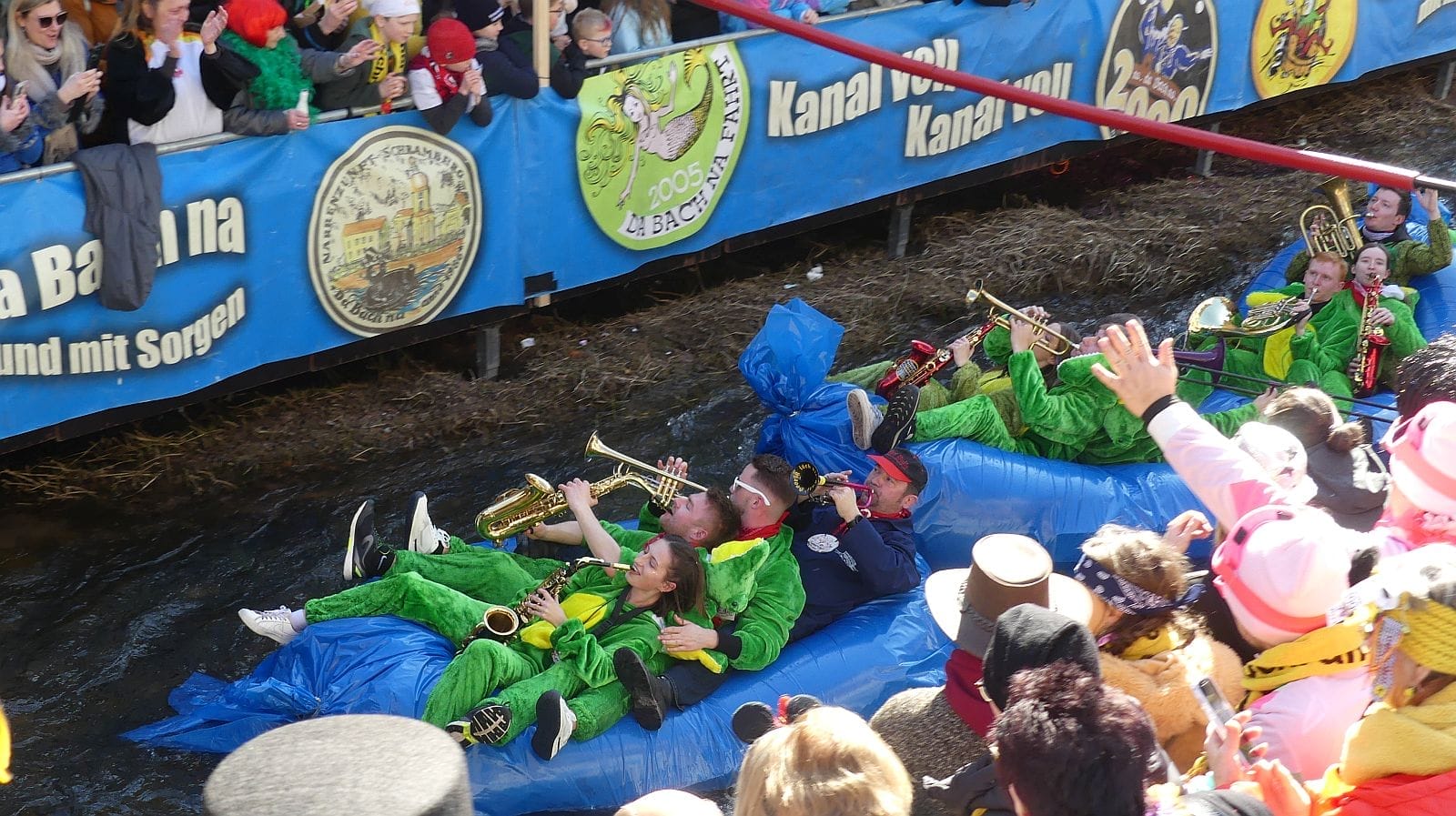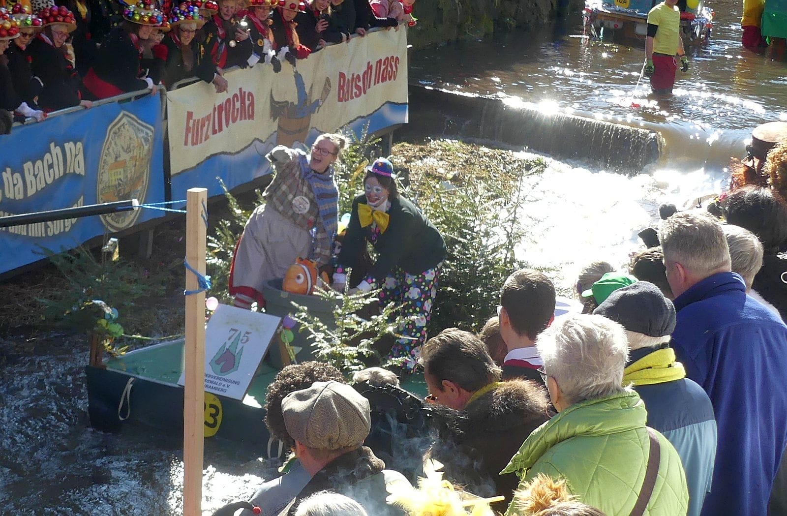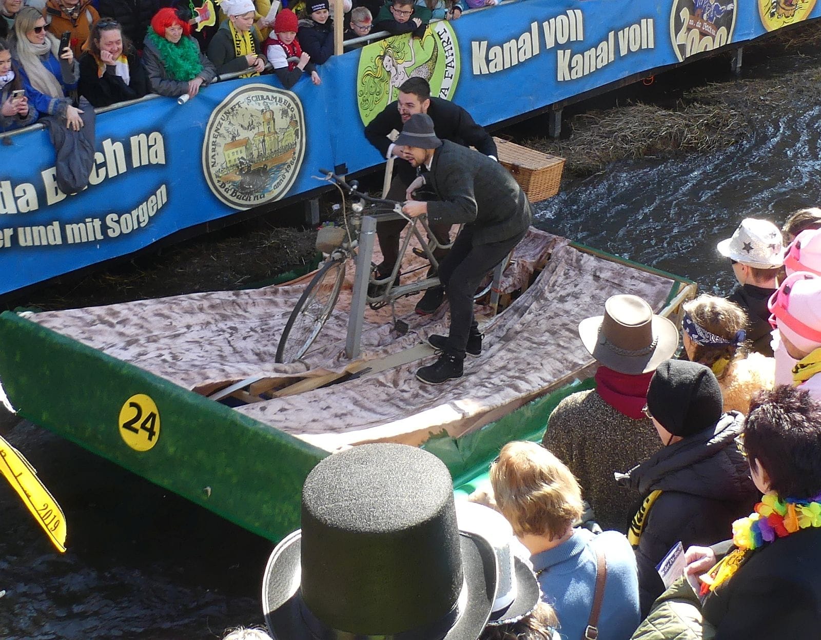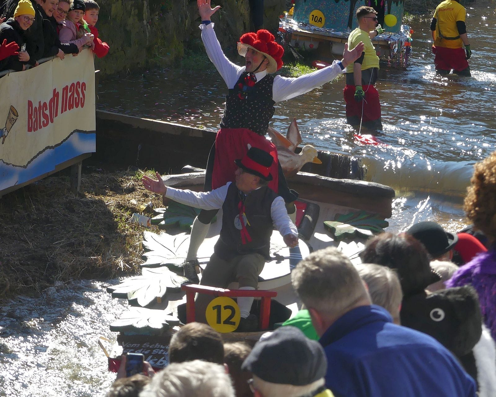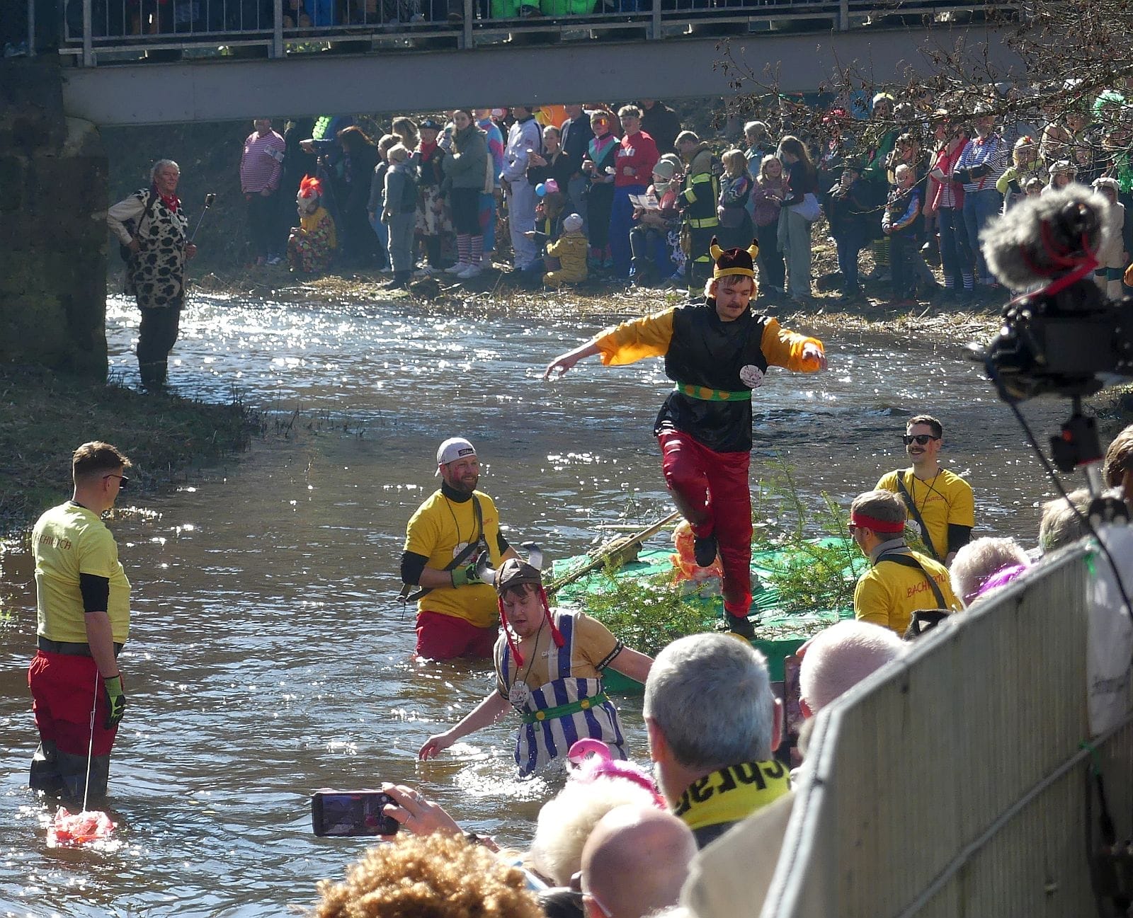 Die Da- Bach-Na-Fahr war wieder ein tolles Erlebnis. Bei vier grad Wassertemperatur, die Sprecher Hettich bekannt gab, vermieden die meisten das freiwillige Bad im Kirchenbach. Schrambergs OBine schaffte es und kam furztrocka ins Ziel. Nach knapp einer Stunde hatten es alle ins Ziel geschafft – irgendwie halt, furz-trocka oder batsch-nass. Natürlich gabs auch wieder einen Schwarzfahrer und die Stadtmusik vorneweg in Gummibootle. In unserer Galerie am Schluss, warum auch immer. Sagen wir, es war die KI, oder Trump oder die Ampel. „Ich doch ned…“