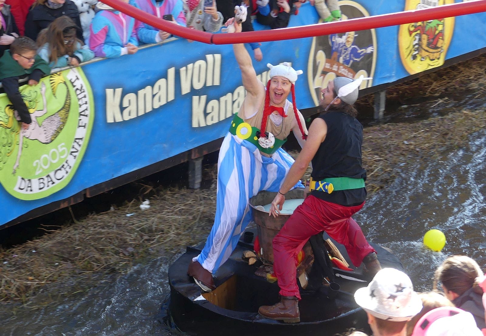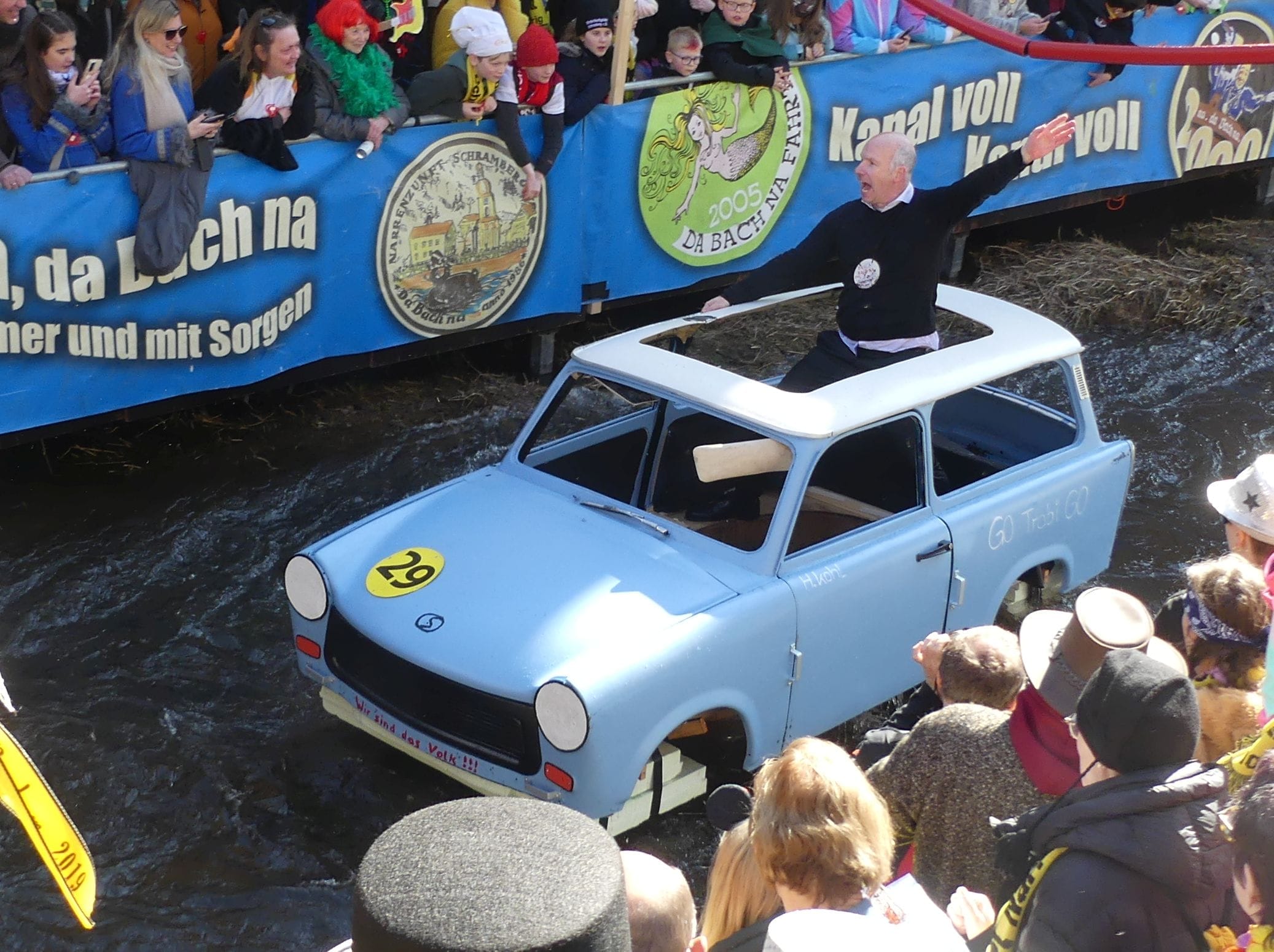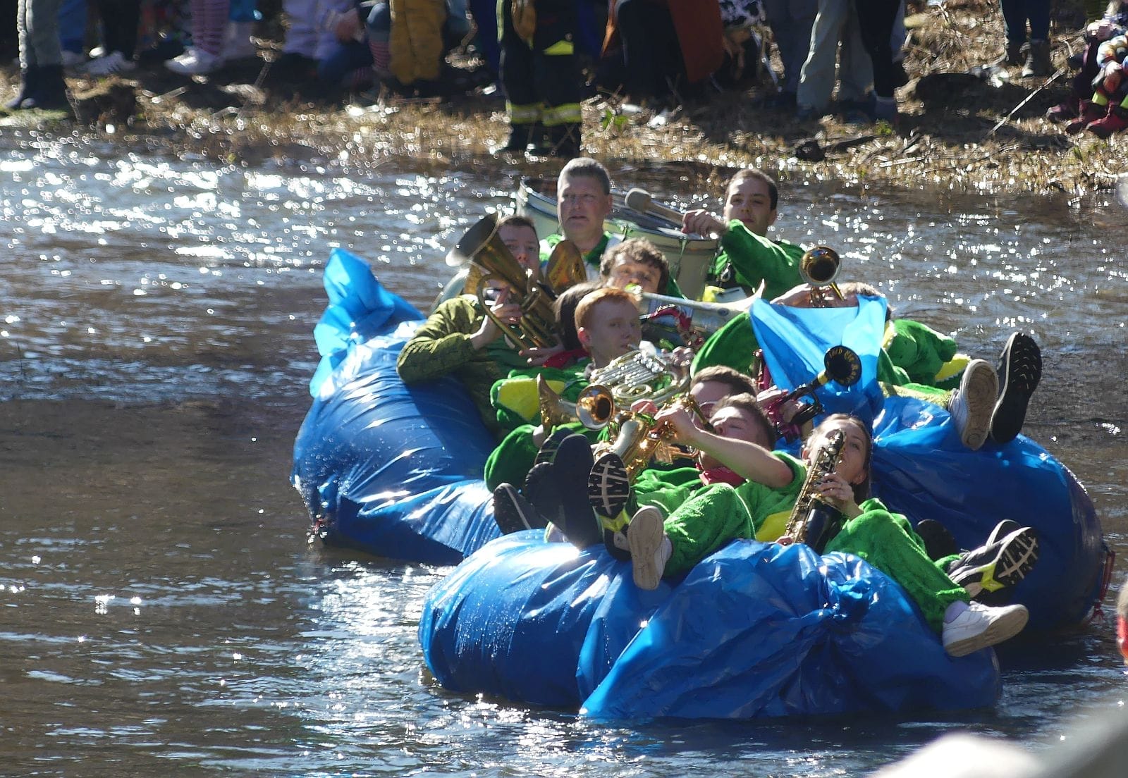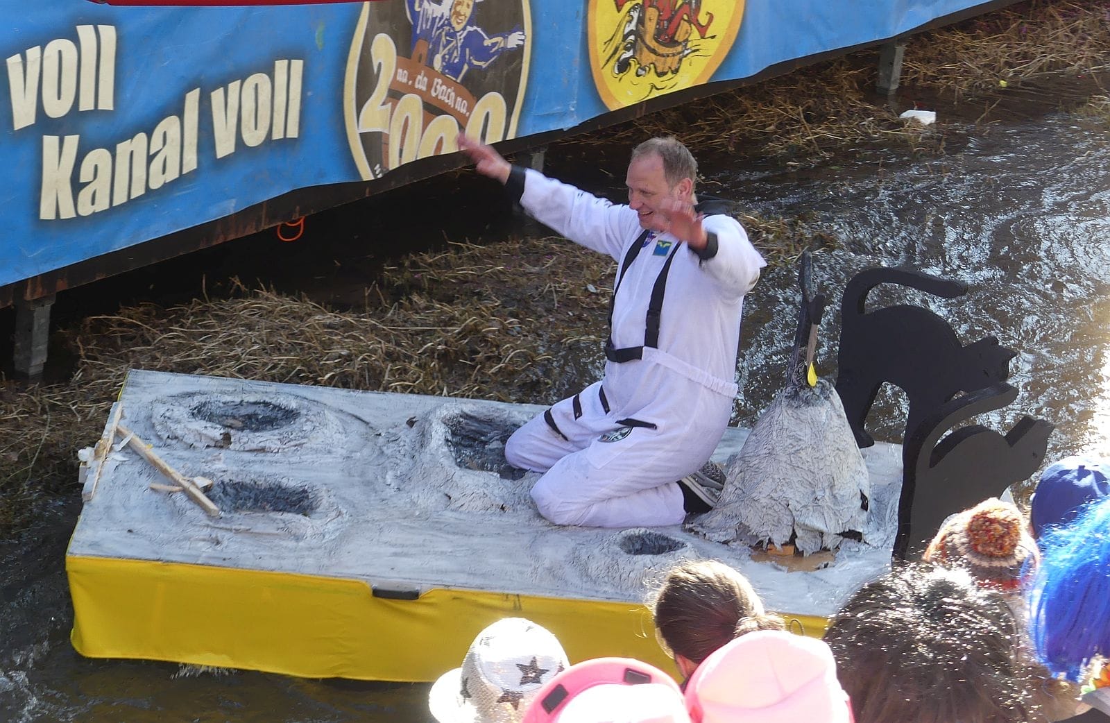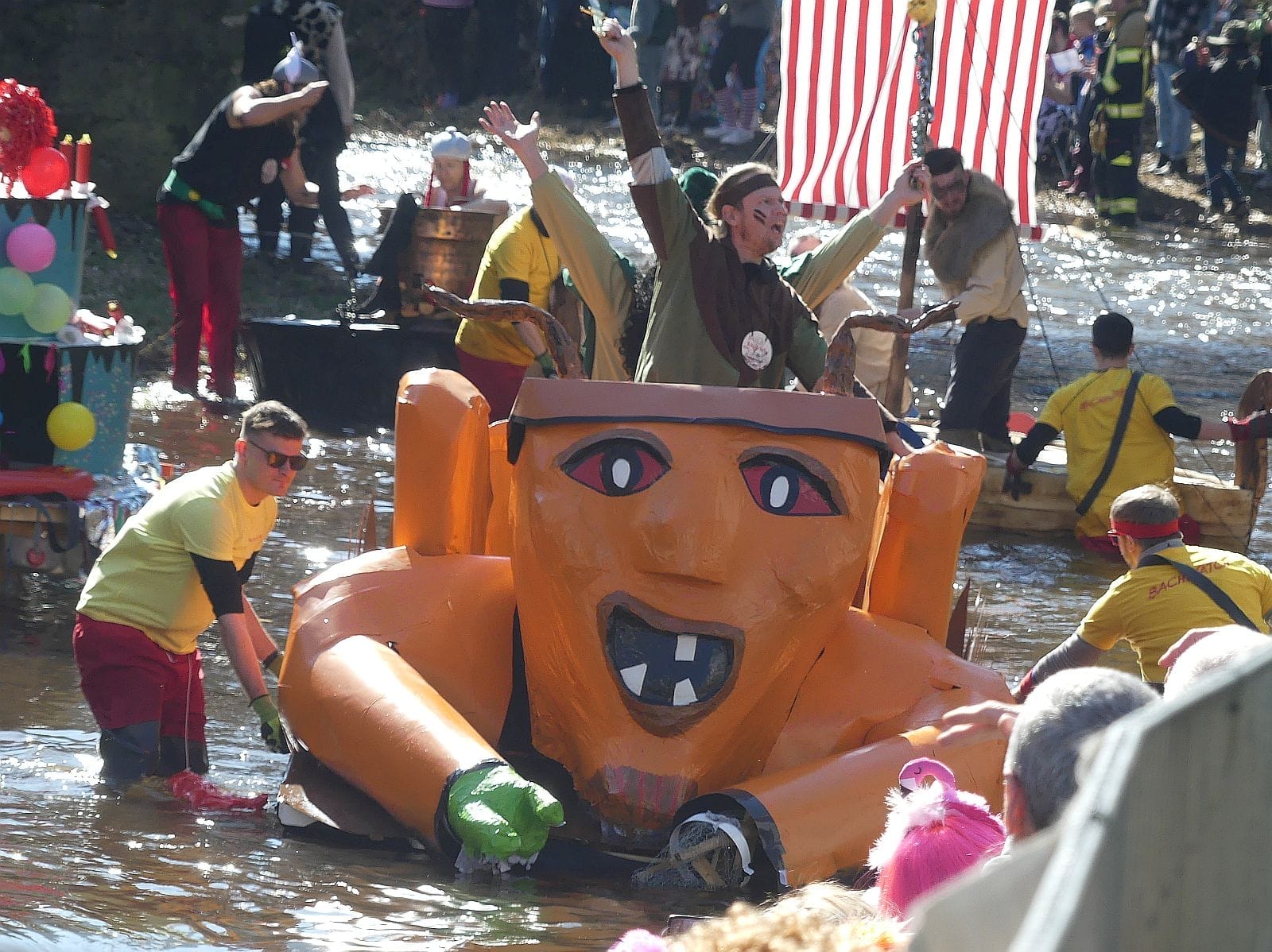 Die Da- Bach-Na-Fahr war wieder ein tolles Erlebnis. Bei vier grad Wassertemperatur, die Sprecher Hettich bekannt gab, vermieden die meisten das freiwillige Bad im Kirchenbach. Schrambergs OBine schaffte es und kam furztrocka ins Ziel. Nach knapp einer Stunde hatten es alle ins Ziel geschafft – irgendwie halt, furz-trocka oder batsch-nass. Natürlich gabs auch wieder einen Schwarzfahrer und die Stadtmusik vorneweg in Gummibootle. In unserer Galerie am Schluss, warum auch immer. Sagen wir, es war die KI, oder Trump oder die Ampel. „Ich doch ned…“