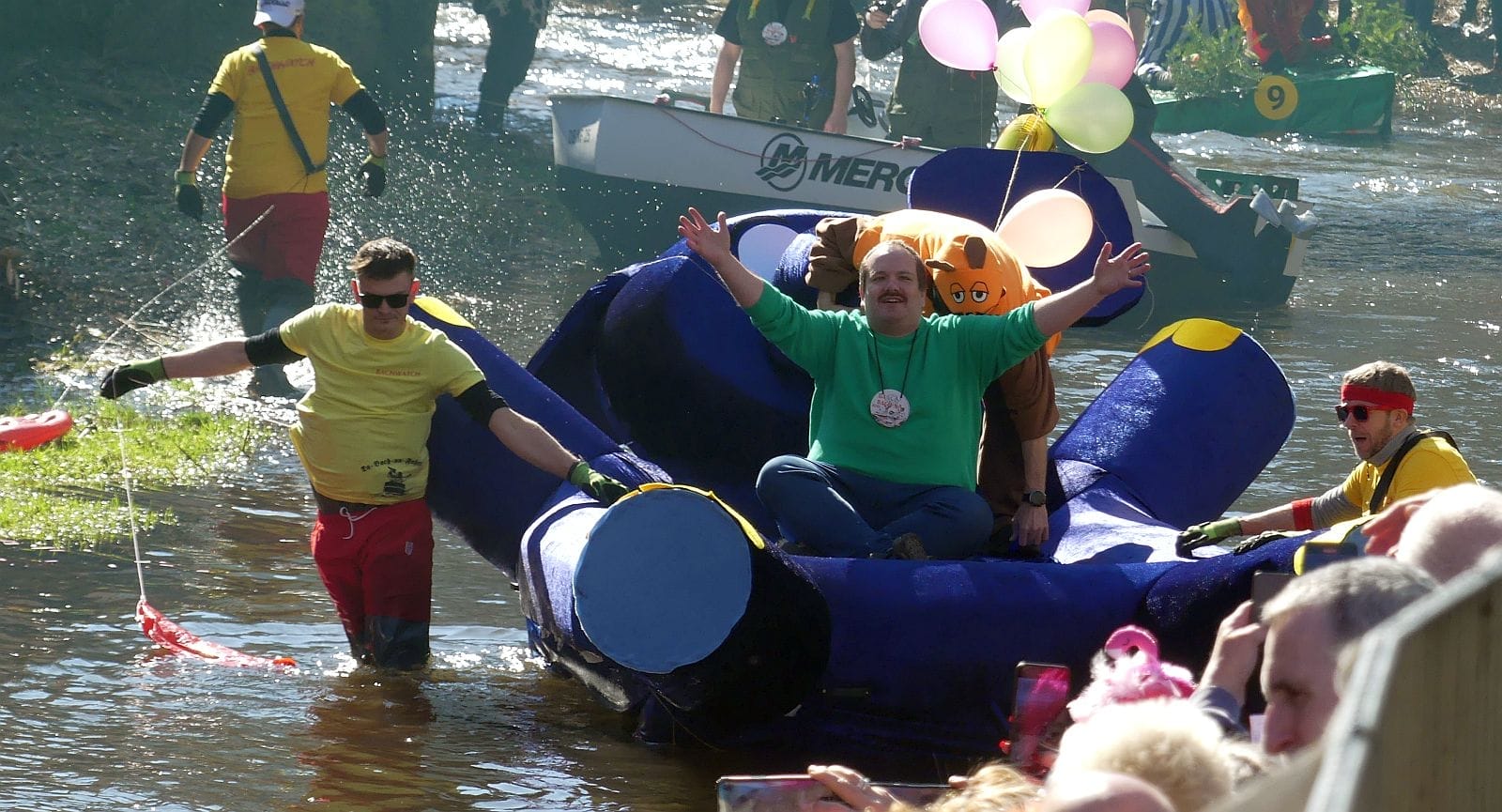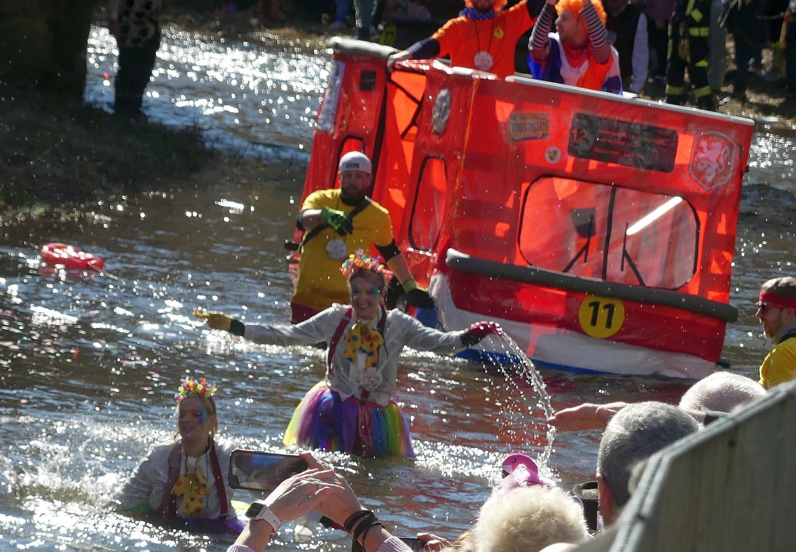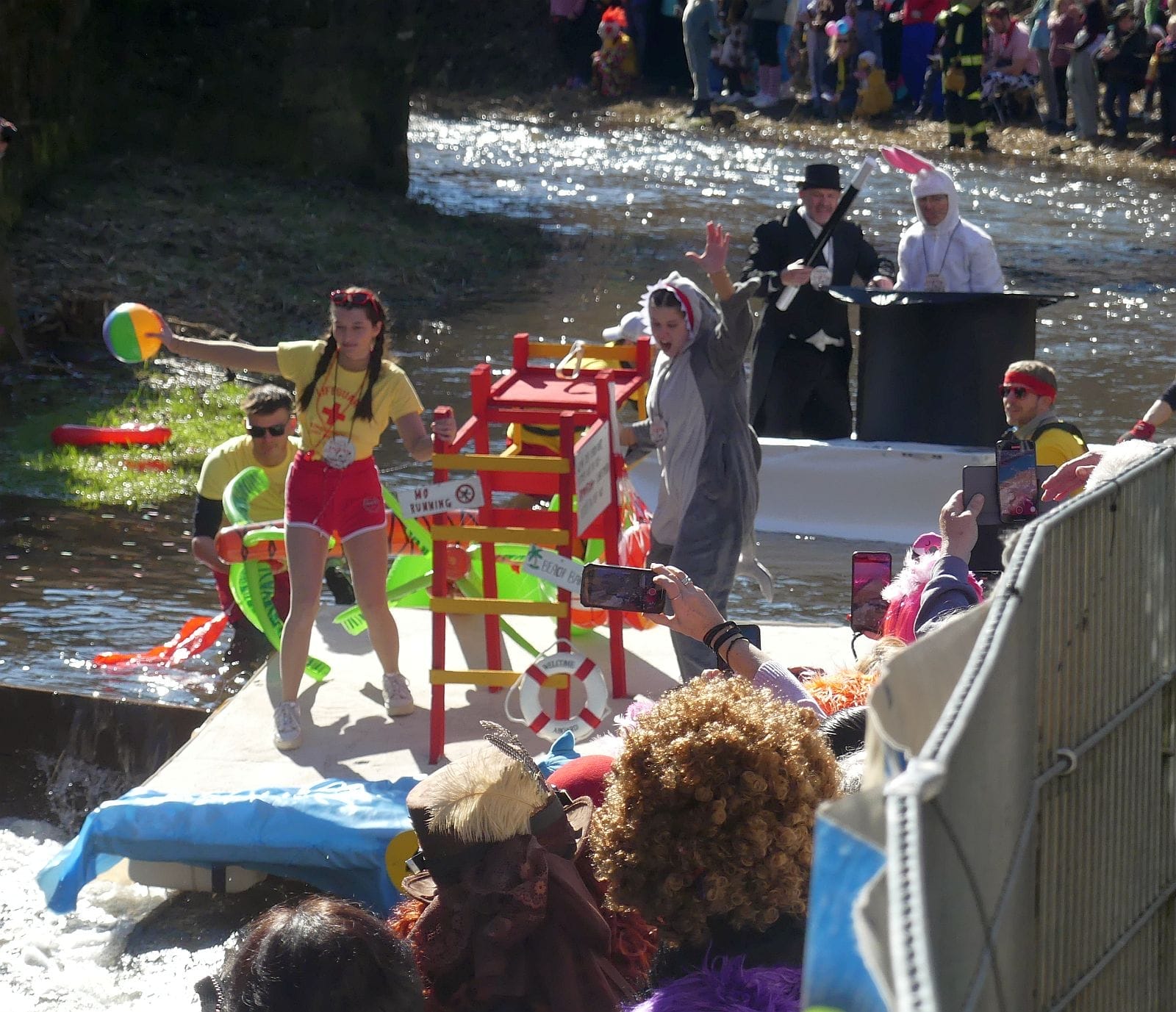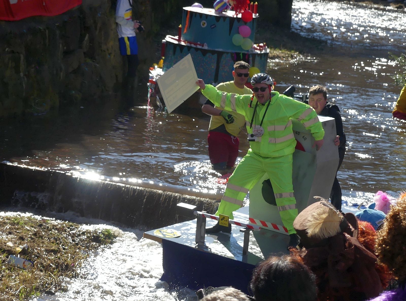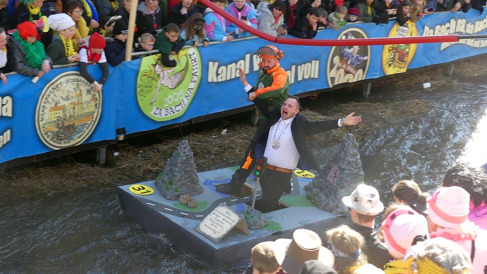 Die Da- Bach-Na-Fahr war wieder ein tolles Erlebnis. Bei vier grad Wassertemperatur, die Sprecher Hettich bekannt gab, vermieden die meisten das freiwillige Bad im Kirchenbach. Schrambergs OBine schaffte es und kam furztrocka ins Ziel. Nach knapp einer Stunde hatten es alle ins Ziel geschafft – irgendwie halt, furz-trocka oder batsch-nass. Natürlich gabs auch wieder einen Schwarzfahrer und die Stadtmusik vorneweg in Gummibootle. In unserer Galerie am Schluss, warum auch immer. Sagen wir, es war die KI, oder Trump oder die Ampel. „Ich doch ned…“