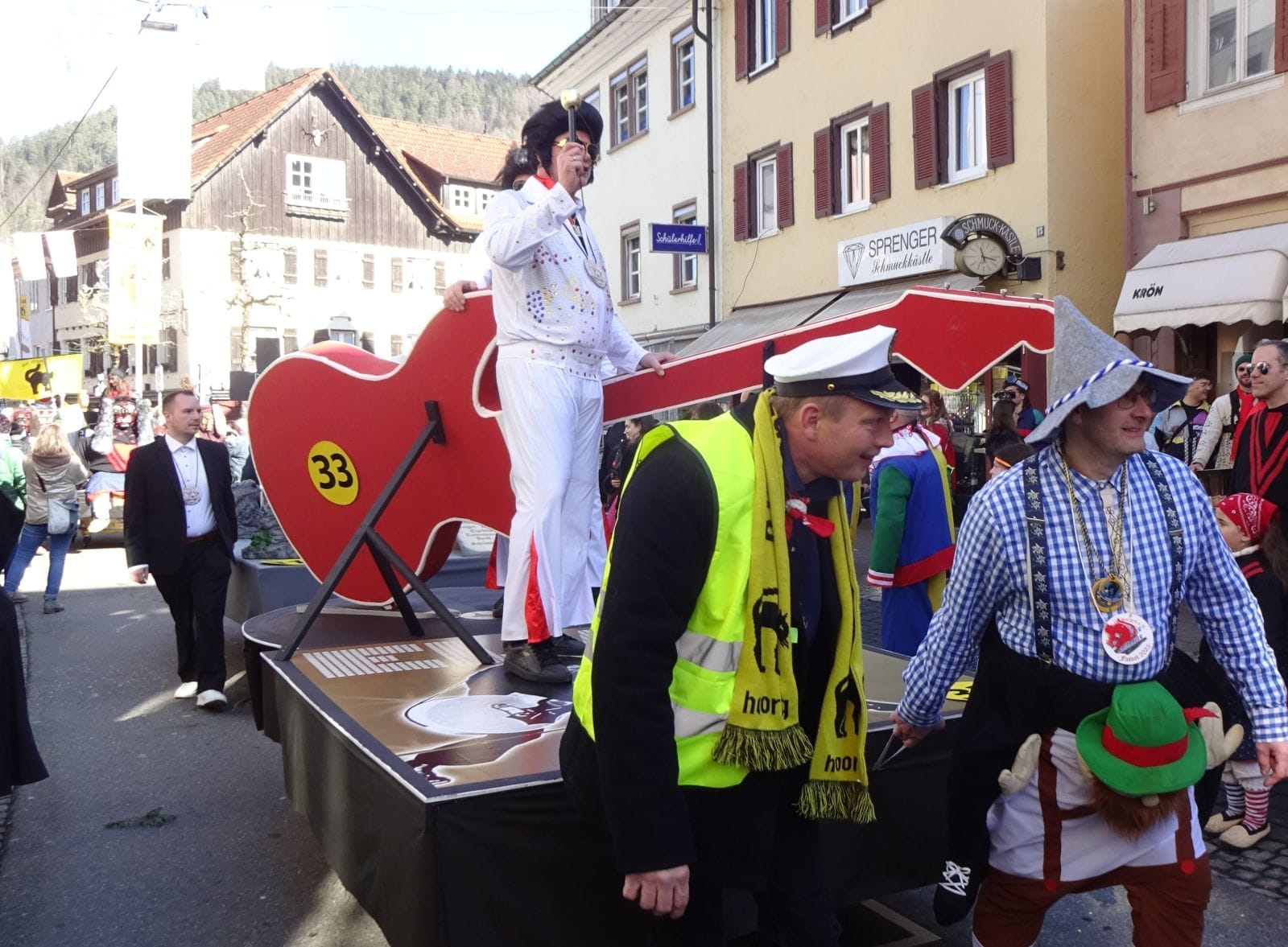 Viel mehr oder weniger prominenten Gäste standen auf den Brücken und Tribünen: Die Bundestagsabgeordnete Maria Lena Weiß, sowie die Landtagsabgeordneten Guido Wolf, Stefan Teufel und Daniel Karrais waren gekommen. Außerdem begrüßten die Sprecher Andreas Hettich und Tobse Dold am Roßgumpen den ehemaligen Bundestagsabgeordneten Volker Kauder, der ja selbst da-Bach-na gefahren ist.