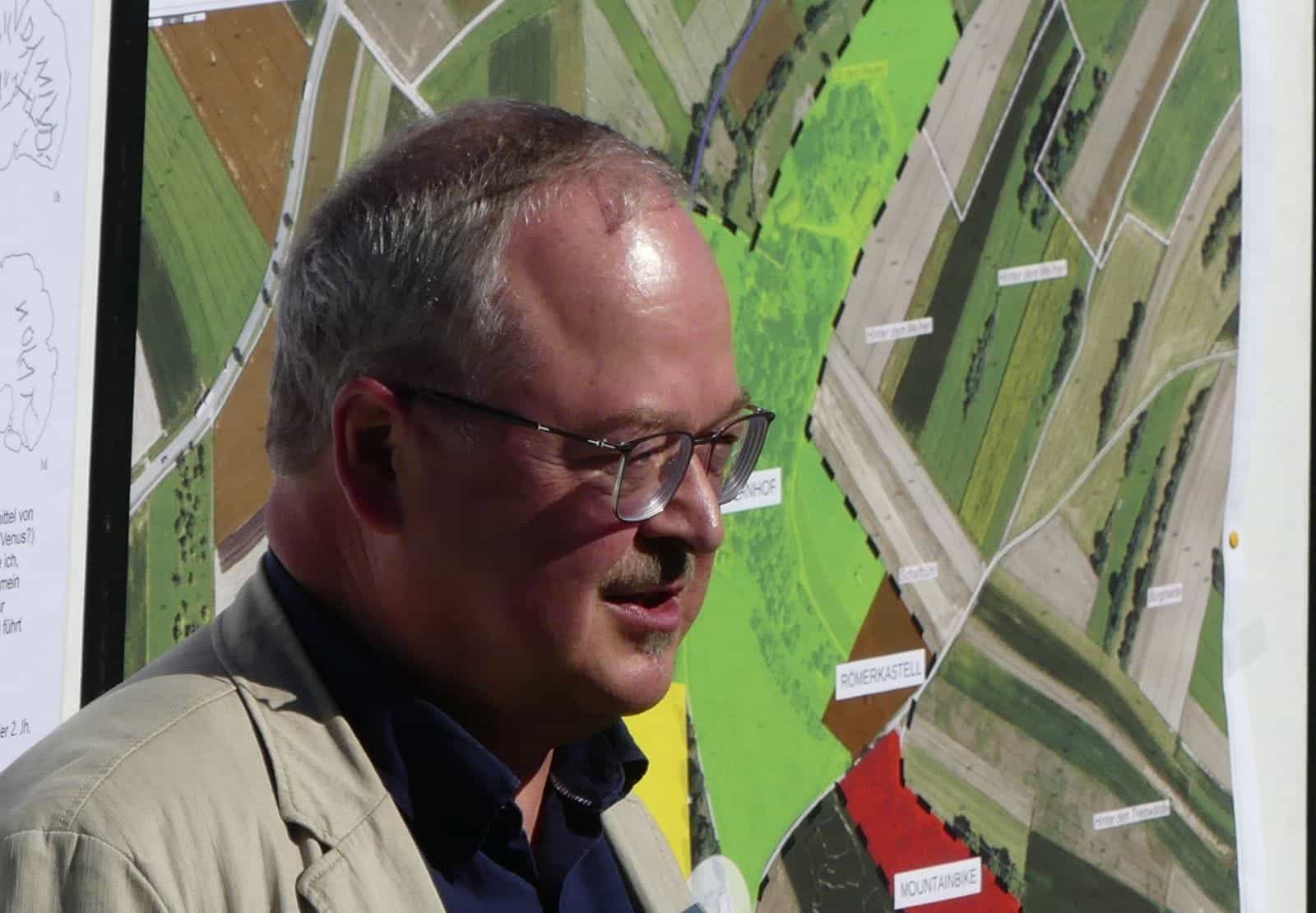 Dr. Klaus Kortüm vom Landesamt für Denkmalpflege im Regierungspräsidium Stuttgart ergänzte, das Kastell liege auf einer landschaftlich herausragenden Stelle. „Entdeckt“ habe es die Reichs-Limeskommission um 1900. Diese habe aber keine Ausgrabungen gemacht, sondern mit Sonden im Boden nach Mauerresten gesucht und so das Ausmaß des Kastells ermittelt.