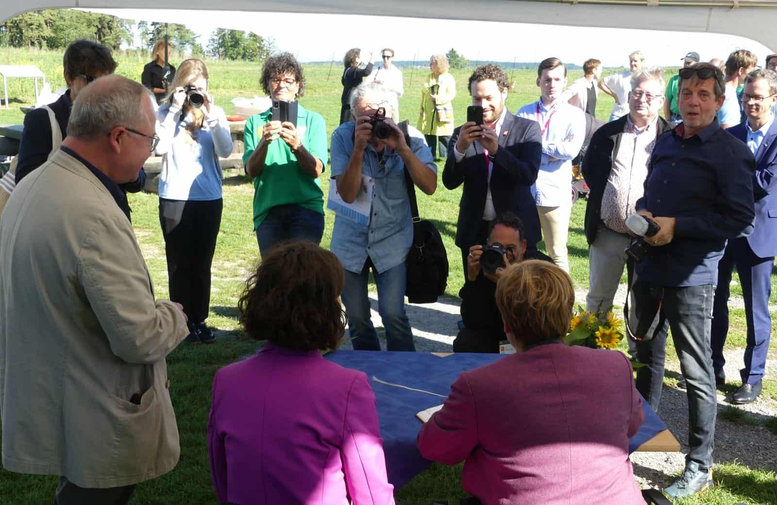 Aus Freiburg war Regierungsvizepräsident Klemens Ficht angereist. Oberbürgermeisterin Dorothee Eisenlohr, Ortsvorsteher Reiner Ulrich, der Leiter des Stadtarchivs und des Stadtmuseums Carsten Kohlmann, mehrere Ortschafts- und Gemeinderätinnen und -Räte, Vereinsmitglieder, Fotografen vom Ministerium und von der Stadt beauftragt, eine junge Dame in einer Warnweste als „Ordnerin“, für die Medien der SWR, die Tageszeitung, die NRWZ und und und…