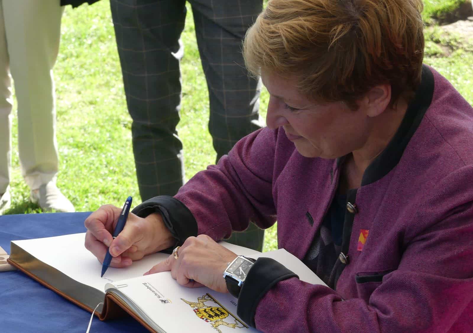 Bevor sich Ministerin Razavi ins Goldene Buch der Stadt Schramberg eintrug, dankte sie persönlich den Eheleuten Pieper und Jonas Viereck als Vertreter des Vereins für Heimatpflege in Waldmössingen für ihren Einsatz.