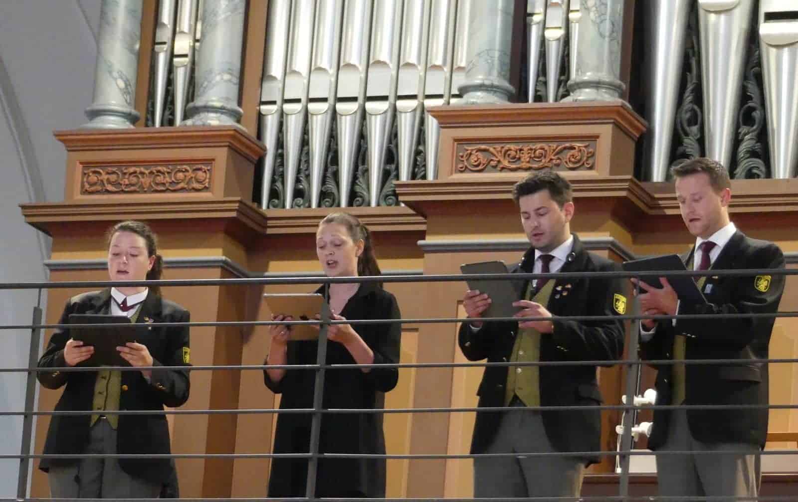 Schließlich kündigte Krause als Zugabe „Prayer for Ukraine“ von Mykola Lissenko aus dem Jahr 1885 an. Von der Empore sangen Mirjam Hettich, Stefanie Flaig, Dominik Dieterle und Peter Flaig das ergreifende Lied – und die Musikerinnen und Musiker der Stadtmusik nahmen die Melodie auf. Wunderbar klang die traurige Melodie im Kirchenraum und den Herzen der Besucherinnen und Besucher nach.