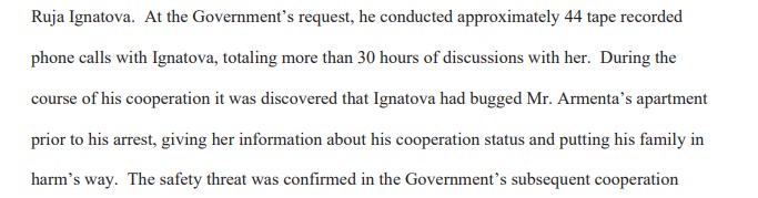 Nach der Party in Sozopol war Ignatova skeptisch geworden und hatte Frank Schneider, ihren Sicherheitsmann, um Hilfe gebeten. Der mietete daraufhin eine Wohnung unter Gilberts Apartment in Florida an, ließ ein Loch durch die Decke bohren und Armenta abhören. Das berühmte Tondokument, in dem Ruja ihren Gilbert als „spineless asshole“, rückgratloses A., beschimpft, stammt aus dieser Zeit. Lustigerweise hat das FBI nämlich ebenfalls Gilbert Armenta überwacht und abgehört…