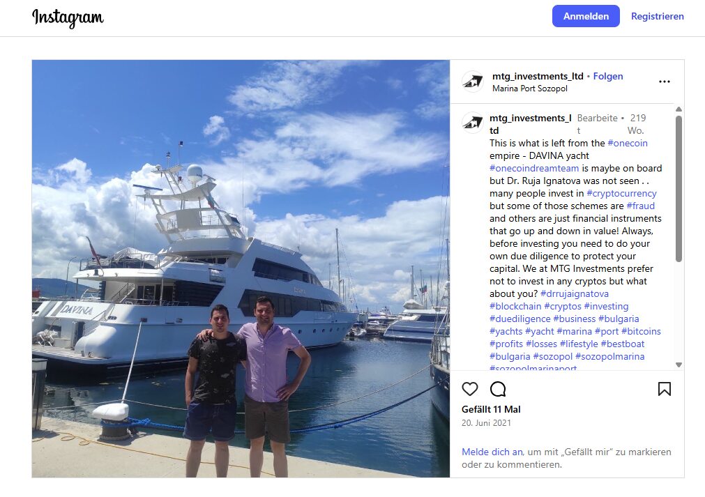 Damals auf der „Davina“ war auch Konstantin Ignatov, der Bruder der Kryptoqueen. Auf Instagram hat er ein Foto von sich gepostet. Lässig steht er am Heck der Yacht. Nach dem Verschwinden seiner Schwester hatte er die Führung bei OneCoin übernommen, bis das FBI ihn im Frühjahr 2019 am Flughafen in Los Angeles verhaftet hat.