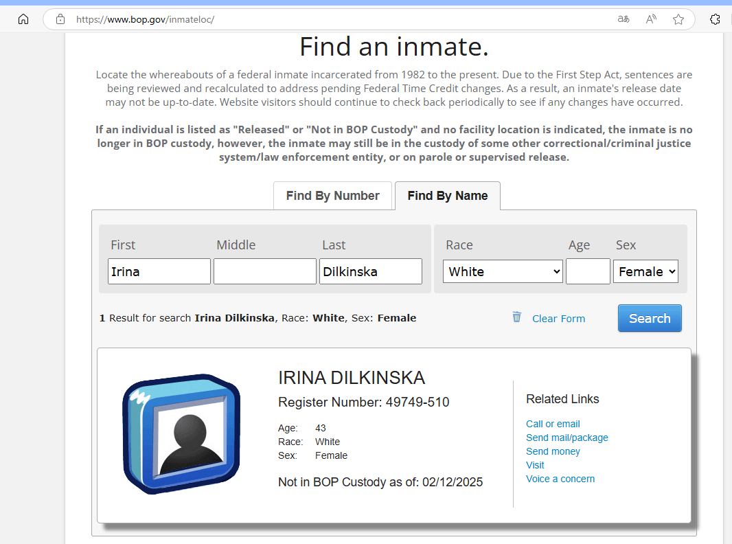 Die US-Behörden hatten 2024 ihre Auslieferung aus Bulgarien erreicht. Dilkinska ist vermutlich nach Verbüßen ihrer Haftstrafe in den USA zurück in ihrer Heimat.