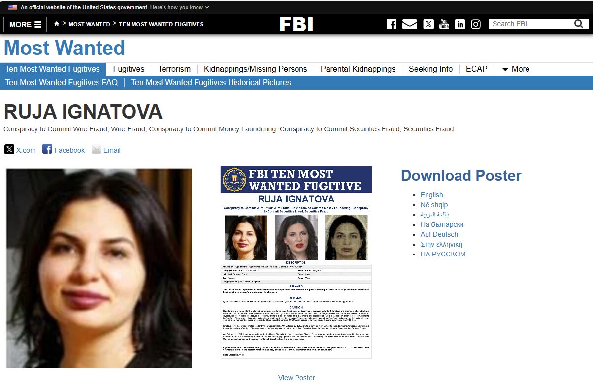 Und die damalige Gastgeberin auf der „Davina“, die Kryptoqueen herself? Sie bleibt verschwunden. Das FBI hat sie immer noch auf seiner Liste der zehn meistgesuchten Personen. Im Juni 2024 hat die US-Botschaft in Sofia auf die Fahndung und die Belohnung von bis zu fünf Millionen US-Dollar aufmerksam gemacht.