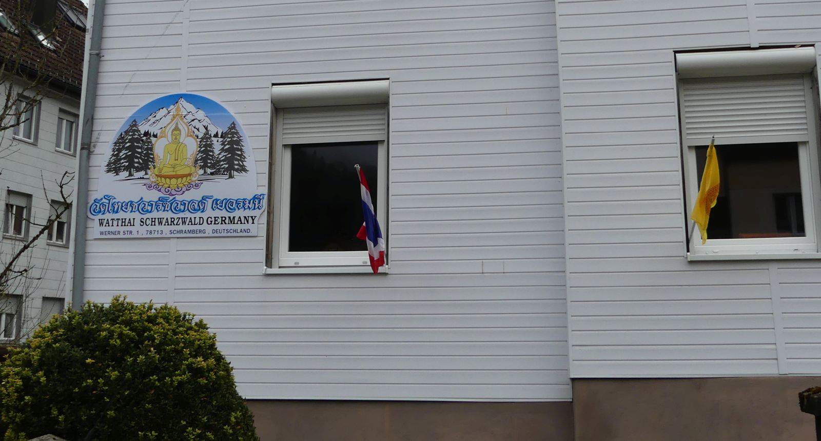 Schramberg. Bunte Fahnen schmücken seit einigen Wochen ein Mehrfamilienhaus an der Wernerstraße in Schramberg: Eine Aufschrift mit einer Buddha-Figur zwischen Tannen vor hohen schneebedeckten Bergen verkündet „Watthai Schwarzwald Germany“. Dahinter verbirgt sich eine kleine buddhistische Gebetsstätte für Menschen mit thailändischen oder laotischen Wurzeln.