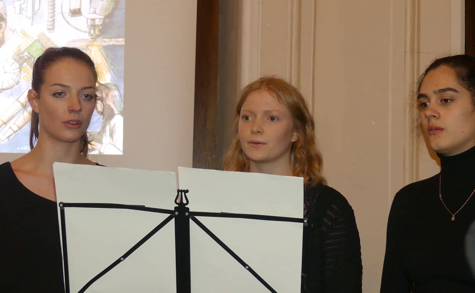 Musikalisch umrahmt hatten die Eröffnung „EmElVa“, ein Gesangstrio mit Emma Wolber, Elisa Brugger und Valerie Bantle, am Klavier begleitet von Claudia Habermann.