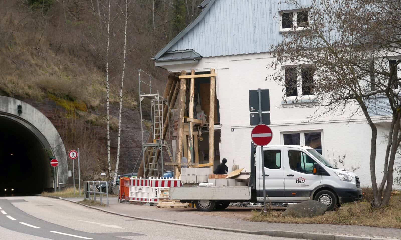 Bauhandwerker haben in den vergangenen Tagen das beschädigte Mauerwerk entfernt und den Eingangsbereich wieder neu aufgemauert.