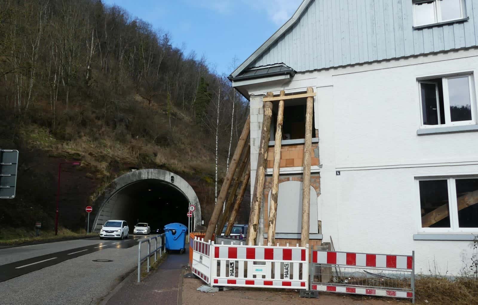 Jetzt muss noch der Gipser kommen und die Wand verputzen. Mindestens so lang werden auch noch die massiven Stützen bleiben, erklärt einer der beteiligten Handwerker.