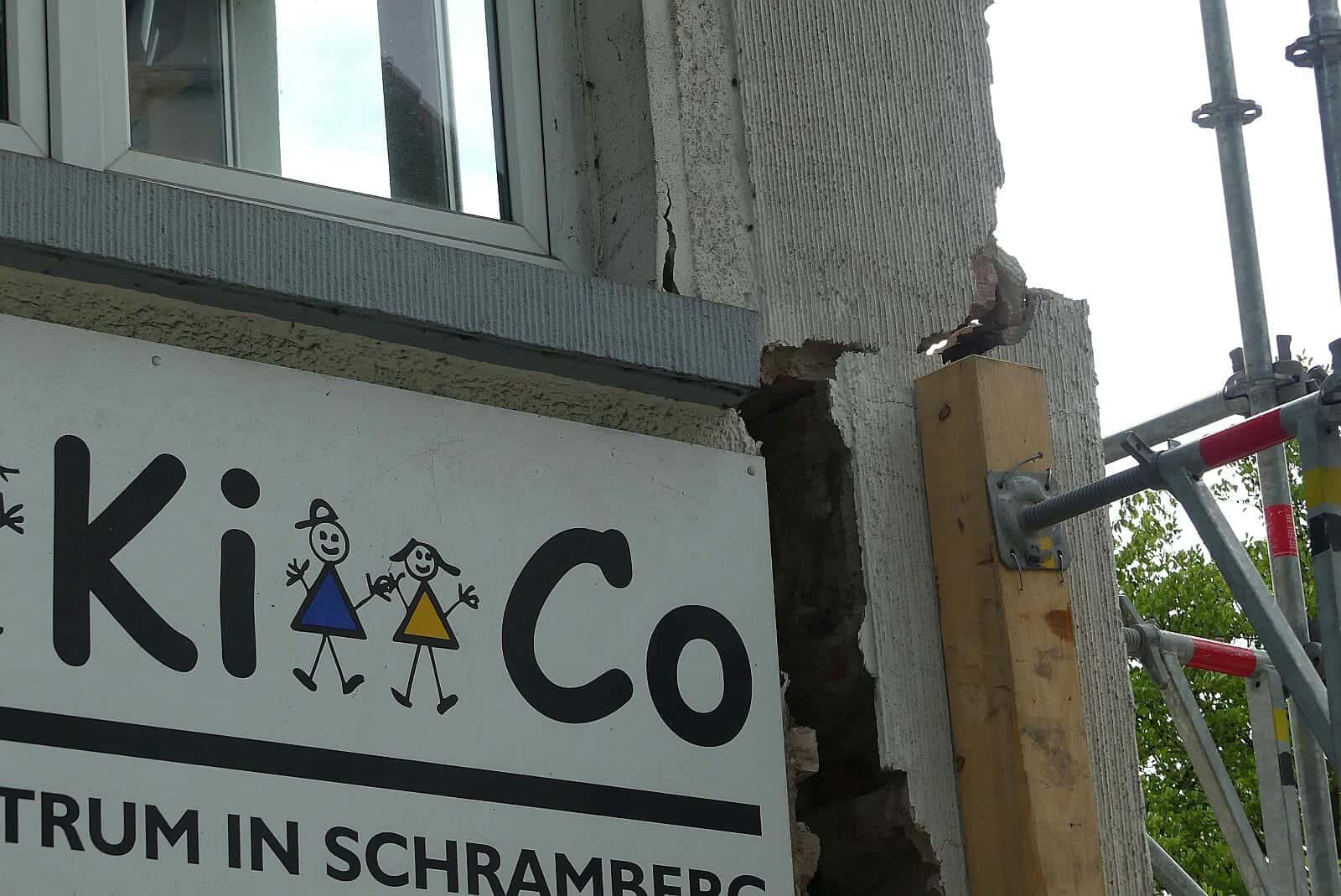 SCHRAMBERG (him) – Nach dem spektakulären Unfall Ende Juli am Eingang des ElkiCo an der Geißhaldenstraße ist der Schaden nun weitgehend behoben.