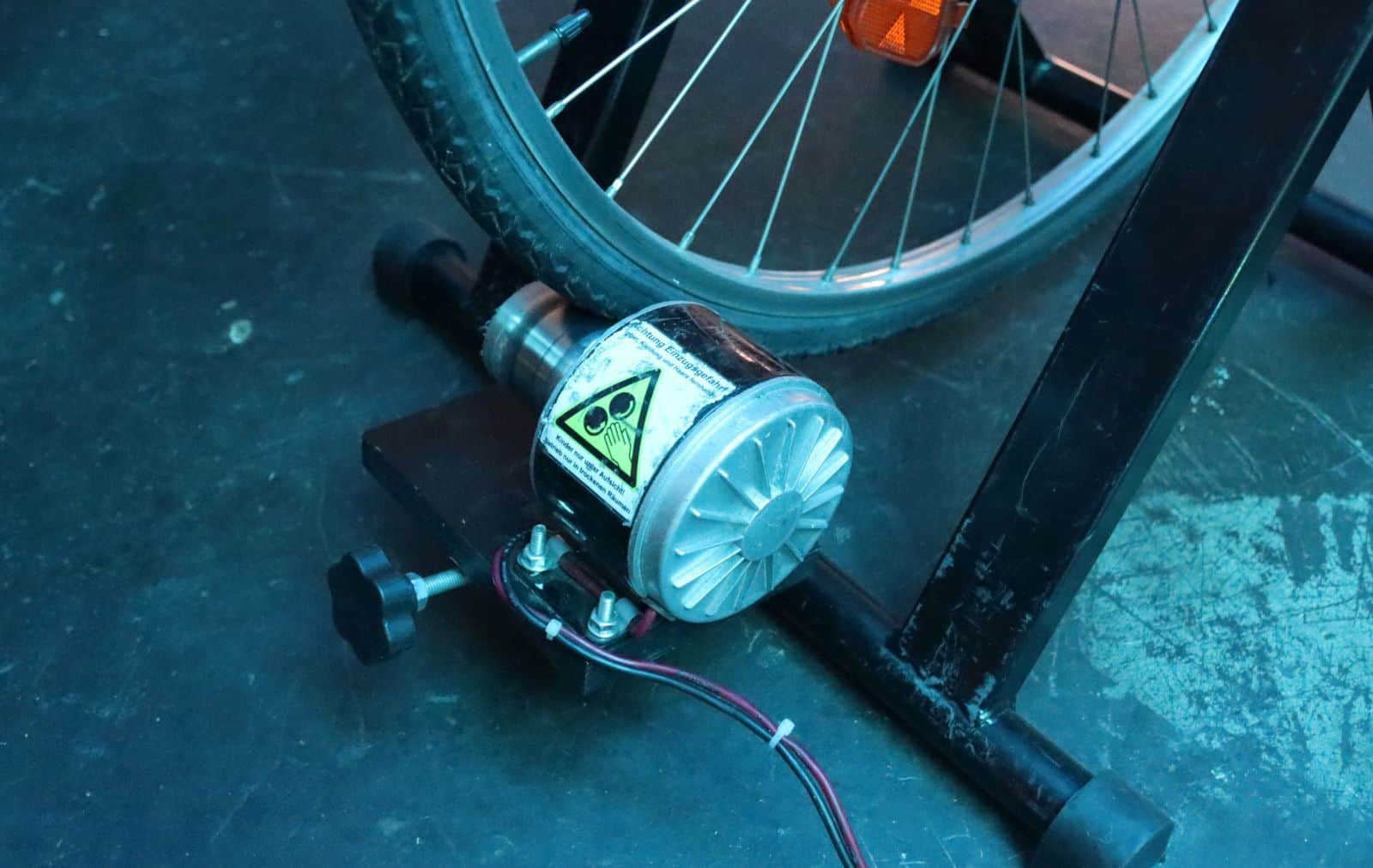 Die Idee: Zehn Fahrräder werden auf Gestelle gespannt, die Hinterräder treiben kleine Generatoren an.