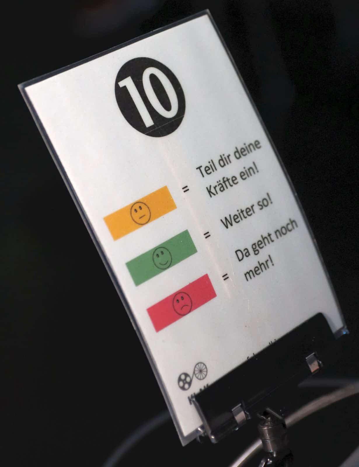 Auf der Leinwand konnte man ablesen, wie viel Leistung jeder Radler und Radlerin gerade erbrachte. War die Leistung insgesamt höher als der Verbrauch, wurde ein Akku geladen: Schwächelten die Radler, kam zusätzliche Energie aus dem Akku. Behringer riet den Radlern: „Überfordern Sie sich nicht!“