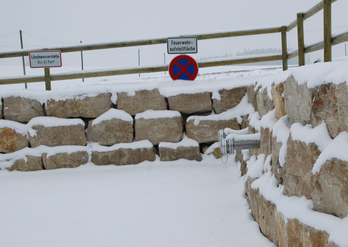 Neben den Hydranten gibt es noch die Möglichkeit, dass die Feuerwehr aus Bächen und Flüssen Löschwasser pumpt. Dafür braucht es offiziell aber Löschwasserentnahmestellen. Die dritte Möglichkeit sind „dezentrale Löschwasserbauwerke“, sprich Löschteiche oder große Tanks.