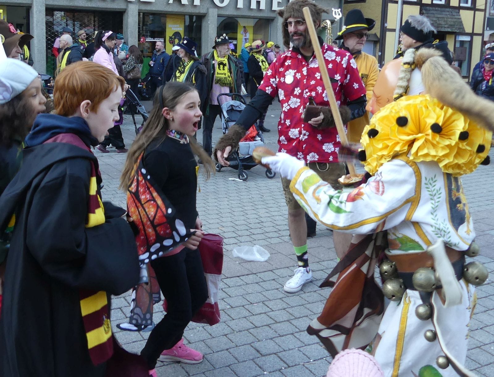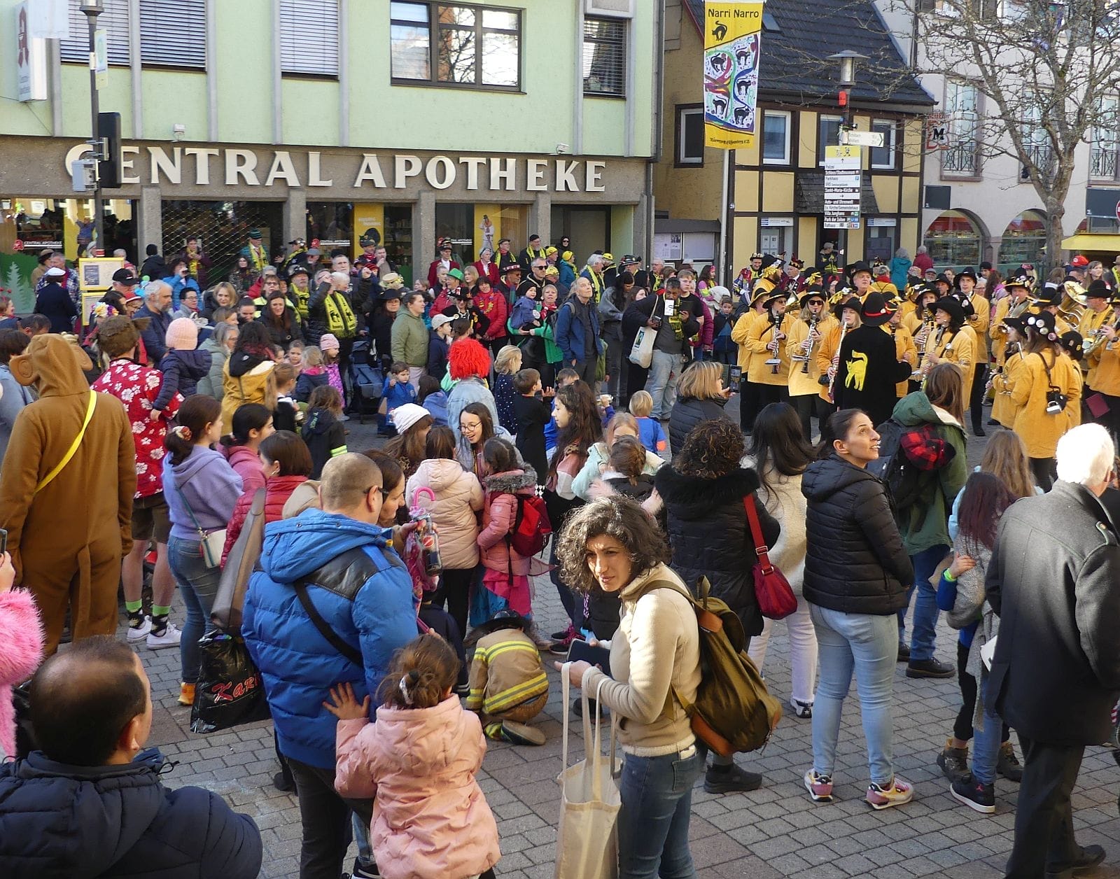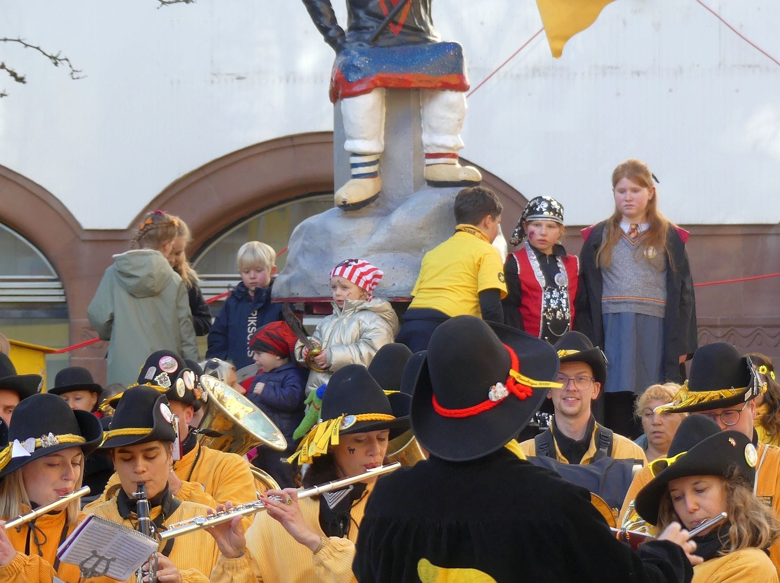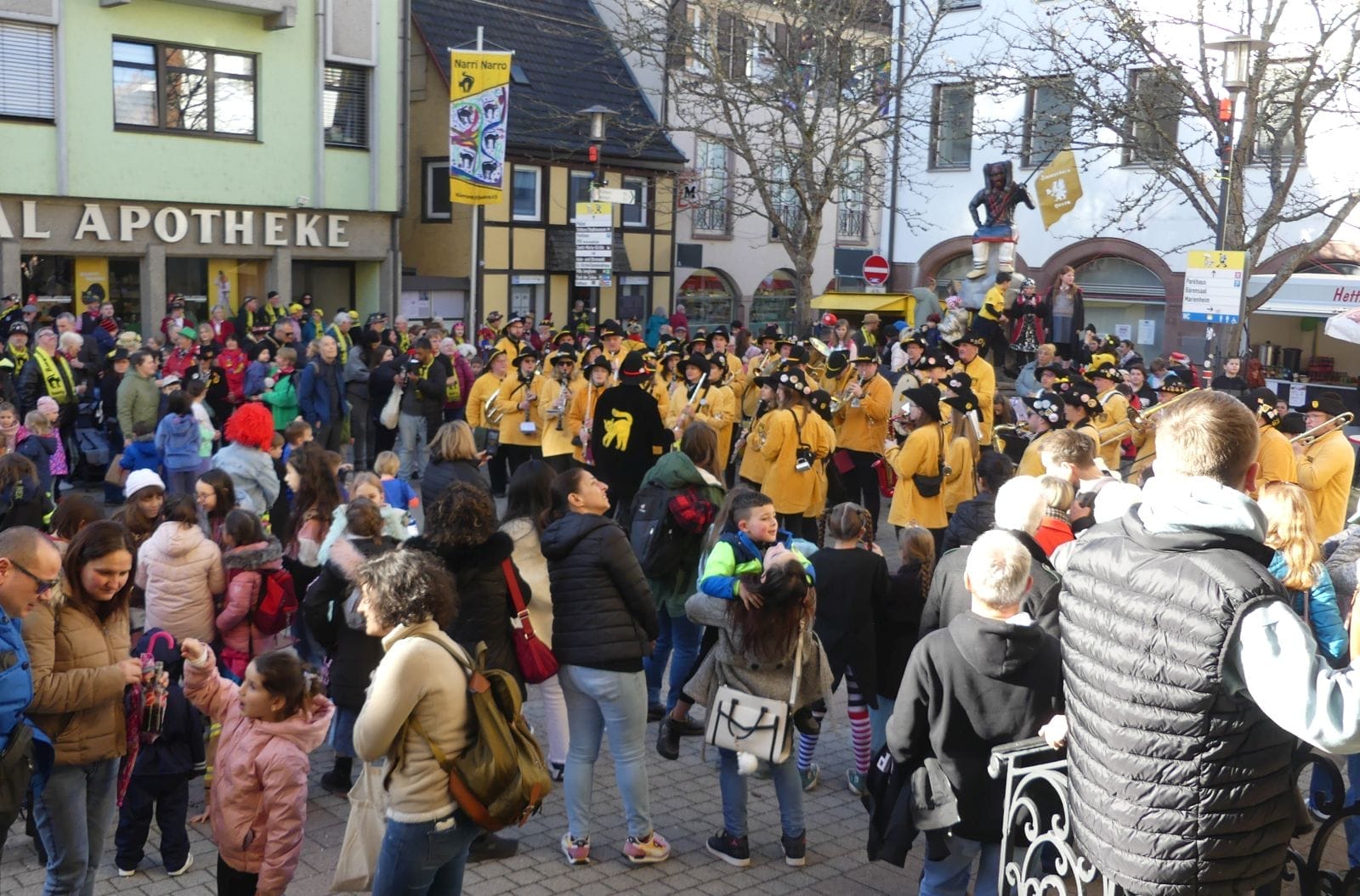 Zum Abschluss der diesjährigen Fasnet kamen viele Freunde der Fasnet und viele Familien nochmal auf den vorderen Rathausplatz. Viele Familien, denn davor hatten die Elferfrauen ihren Kinderball im Bärensaal.