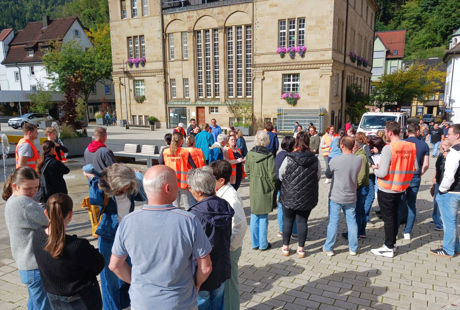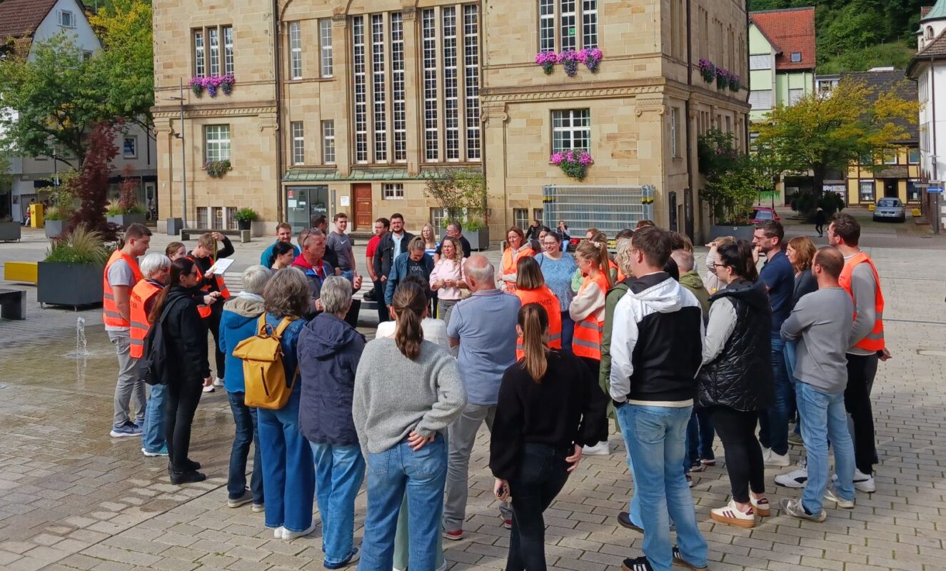 Donnerstag, kurz vor elf. Das Rathaus leert sich. Die Mitarbeiterinnen und Mitarbeiter kommen über den Rathausplatz geschlendert, bekannte Gesichter und weniger bekannte sind dabei. Nebenan bespricht Bauhofleiter Steffen Auber sich mit dem Veranstalter des Megatrails Jonas Fuß, wie die Absperrungen für Samstag aufgestellt werden. Und um 11 ist der bundesweite Warntag? Wie hängt das zusammen?