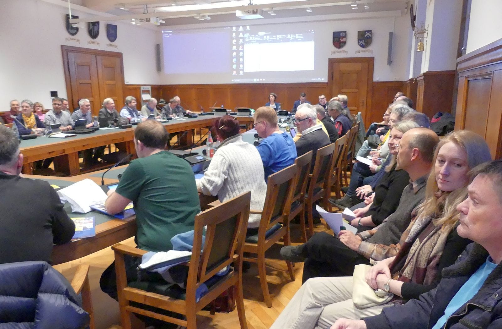 Nach der Bürgerfragestunde befasste sich der Rat mit der Stellungnahme der Stadt (wir werden noch berichten). Bei einigen Enthaltungen und Gegenstimmen, beschloss der Rat, die Stellungnahme von Jochen Öhler und einen Hinweis auf eine mögliche Bebauung am Schoren Richtung Osten sowie die mögliche Ausdehnung einer Wasserschutzzone in die Stellungnahme aufzunehmen.