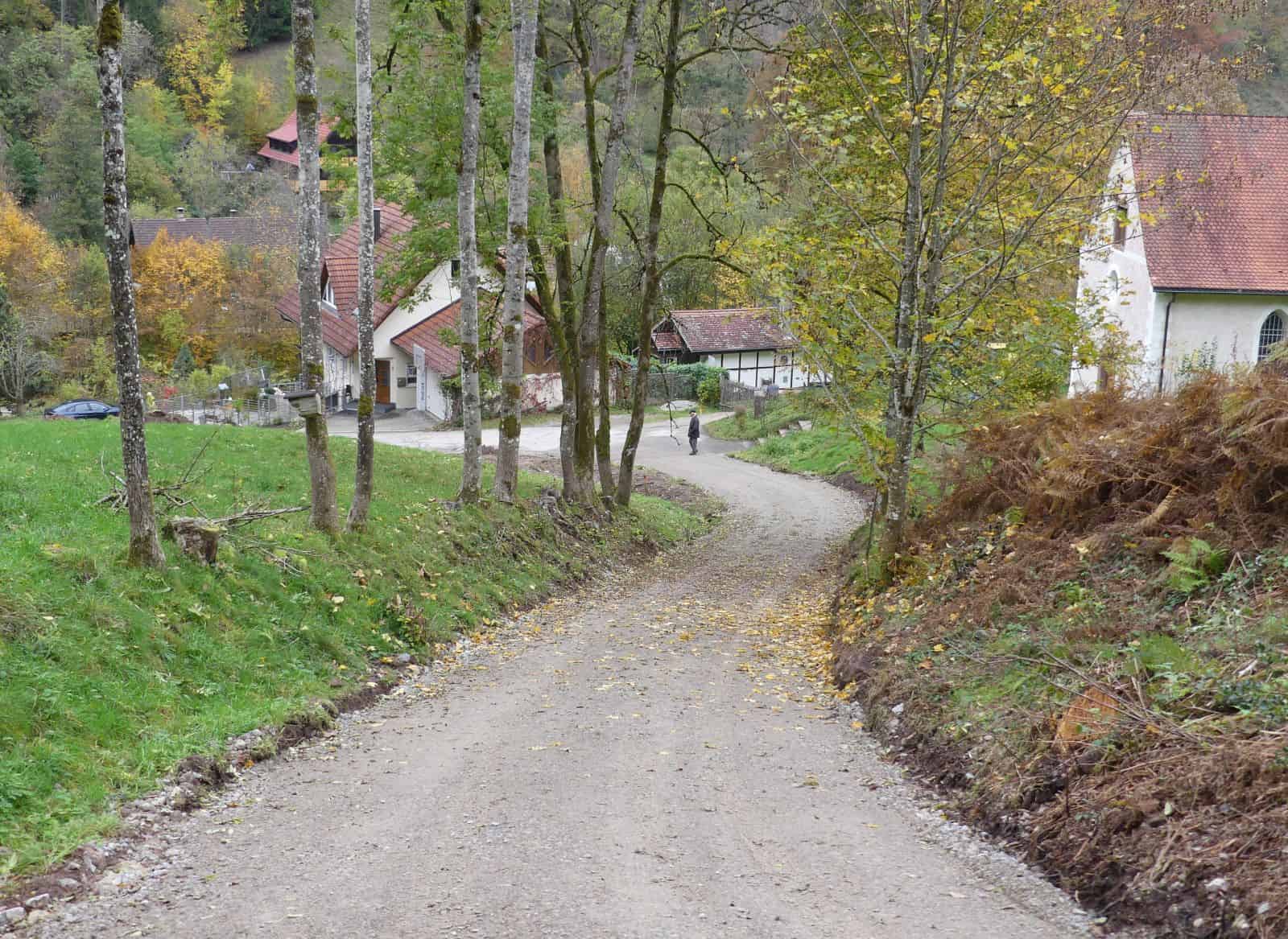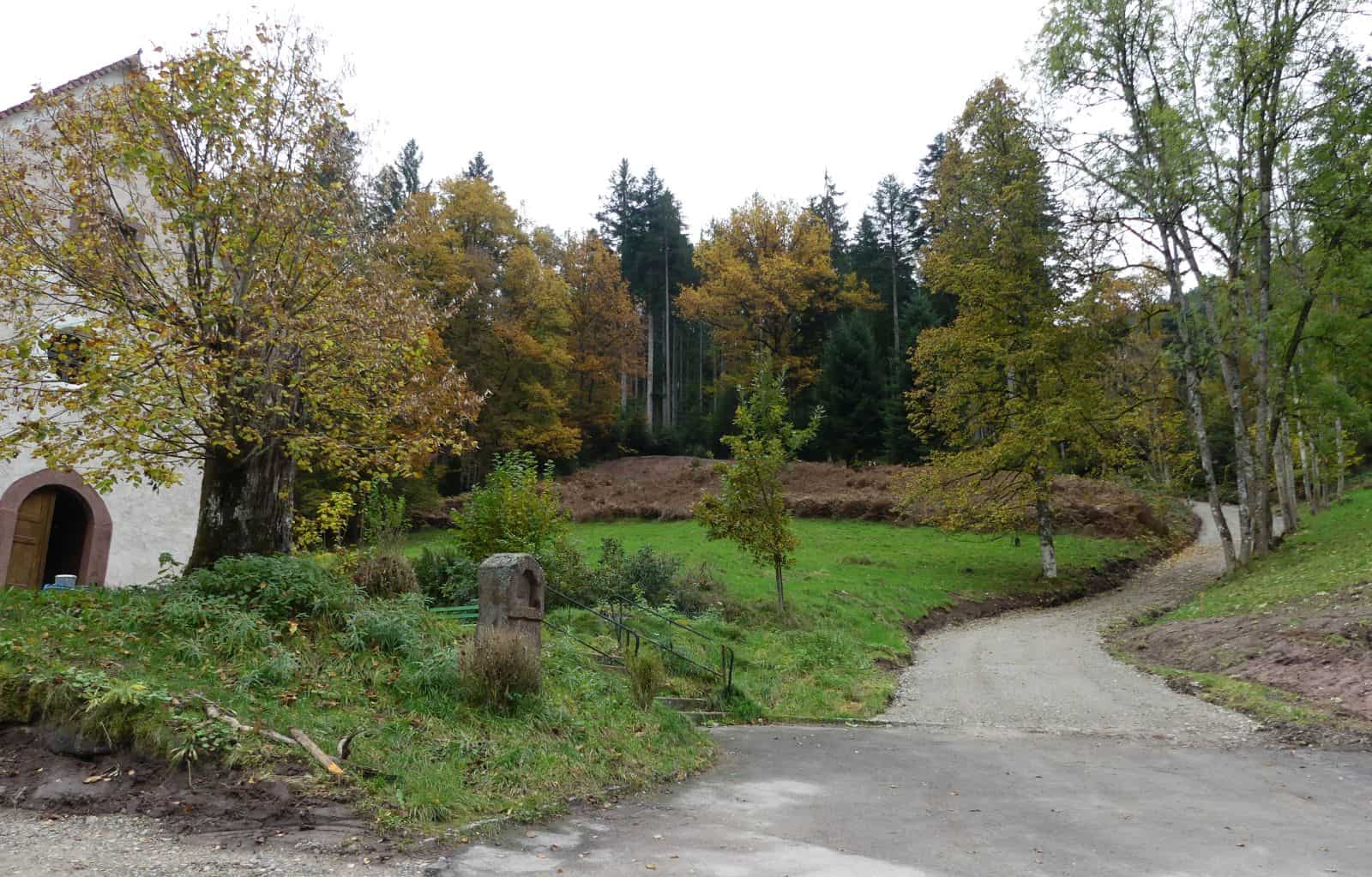 Für den künftigen Bestattungswald haben Bauarbeiter bereits einen breiten Schotterweg von der Kapelle hoch in den Wald gebaut. Foto: him
