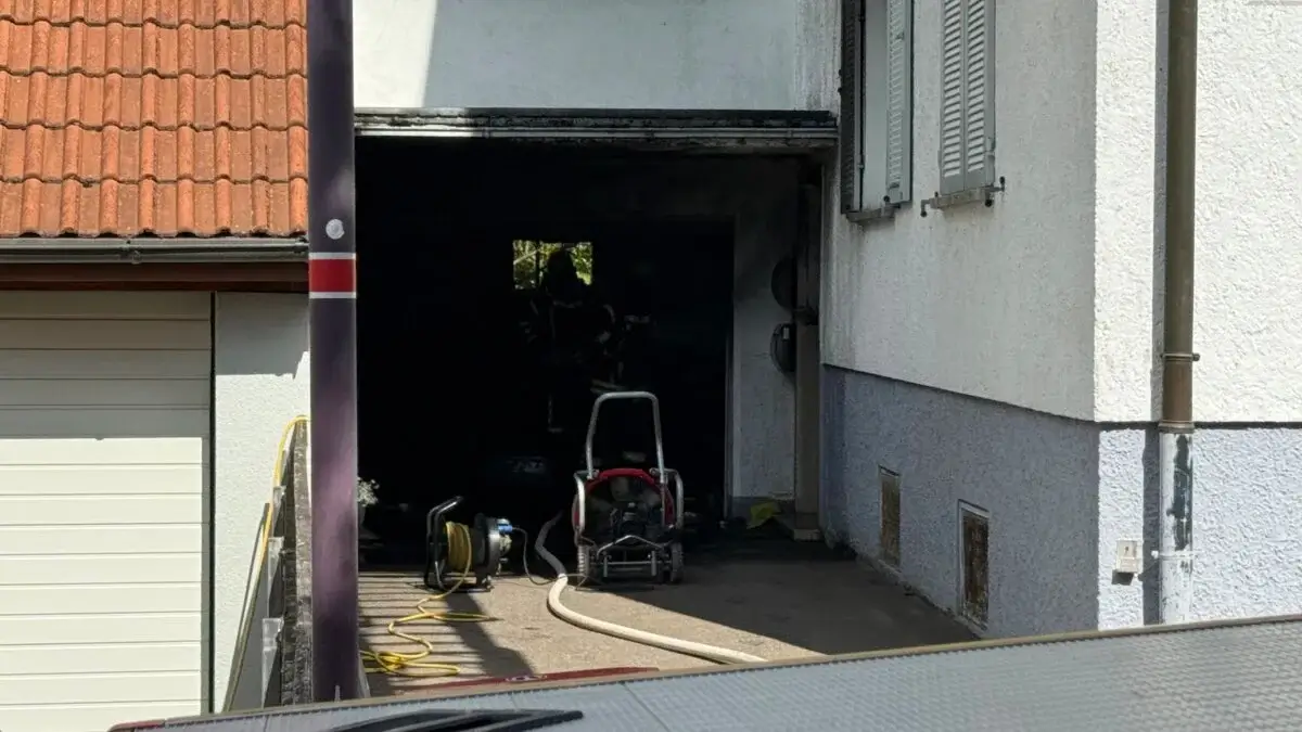 Beim Eintreffen der ersten Kräfte der Feuerwehr habe die Garage im Vollbrand gestanden, berichtete Wöhrle vor Ort der NRWZ. Neben einem Löschangriff galt es, ein Übergreifen des Feuers auf das angrenzende Wohngebäude zu verhindern. Das sei gelungen, so Wöhrle.