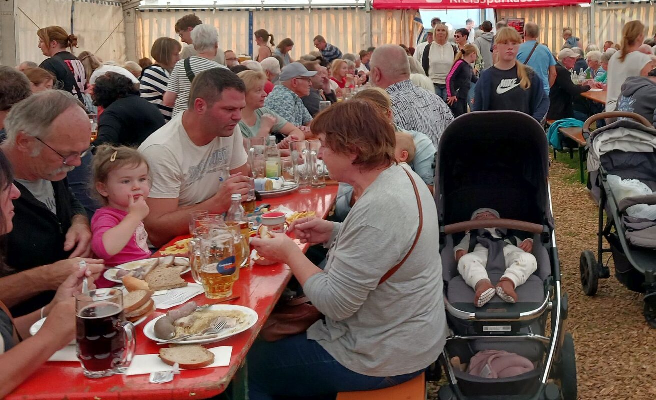 Neben der traditionellen Schlachtplatte servierte die Feuerwehr auch Pommes und Currywurst. An einer Kaffeetheke gab es, klar, Zwetschgendatschi und Kaffee.