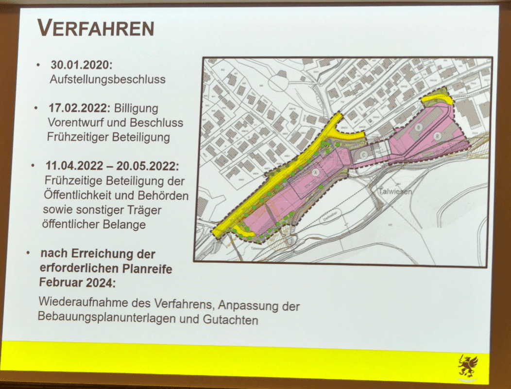 Am 30. Januar steht der Bebauungsplanentwurf auf der Tagesordnung des Gemeinderats. Wenn er den Empfehlungen von Ortschaftsrat und AUT folgt, wird der Plan ausgelegt. Eingehende Einwände muss die Verwaltung wieder abwiegen, bevor der Rat dann den Bebauungsplan endgültig beschließen kann.
