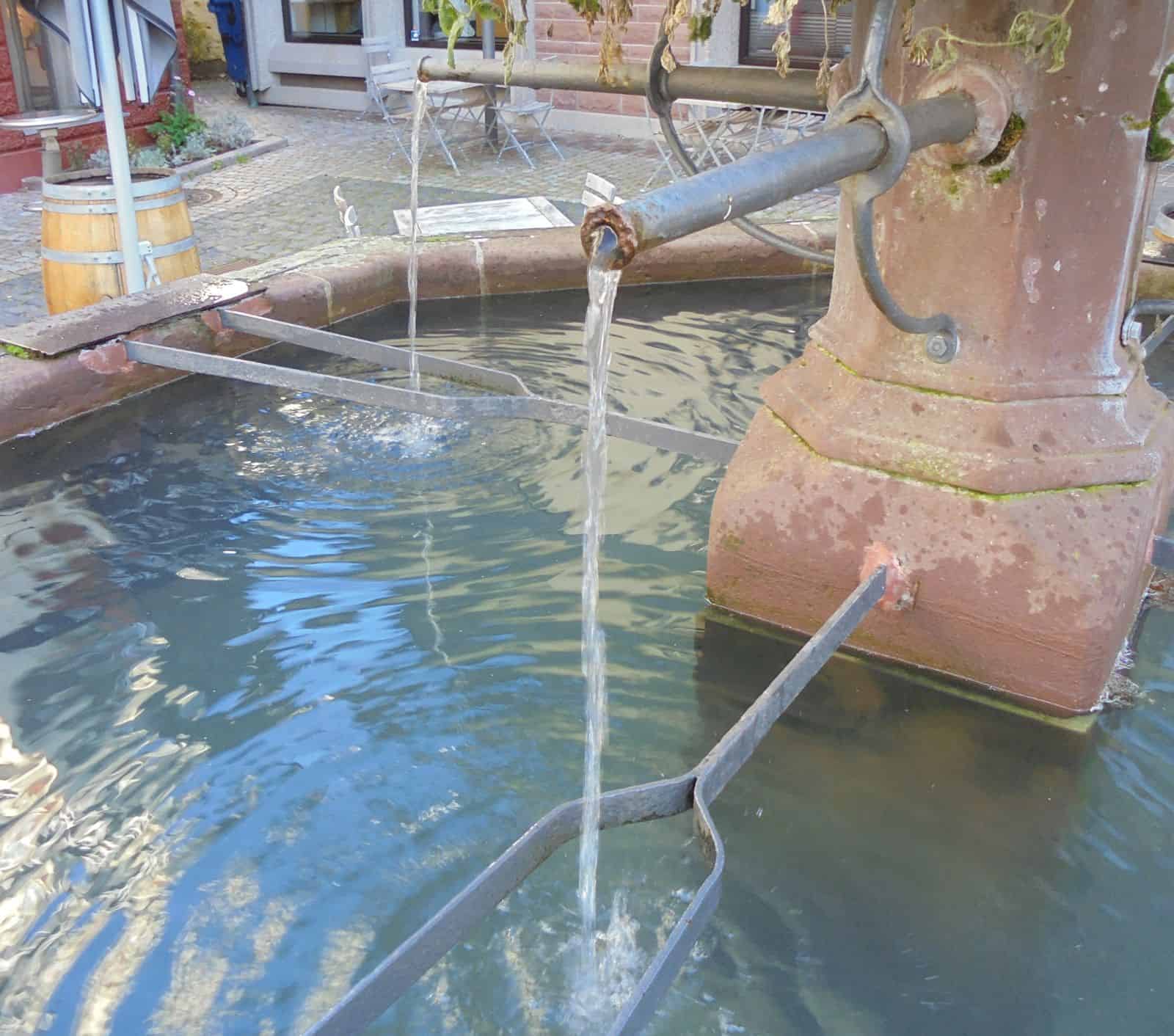 Das Wasser am Hirschbrunnen läuft wieder (ziemlich) klar aus den Rohren. Wie berichtet hatten Bohrarbeiten für eine Stromtrasse am Schlossberg zu einer Trübung geführt.