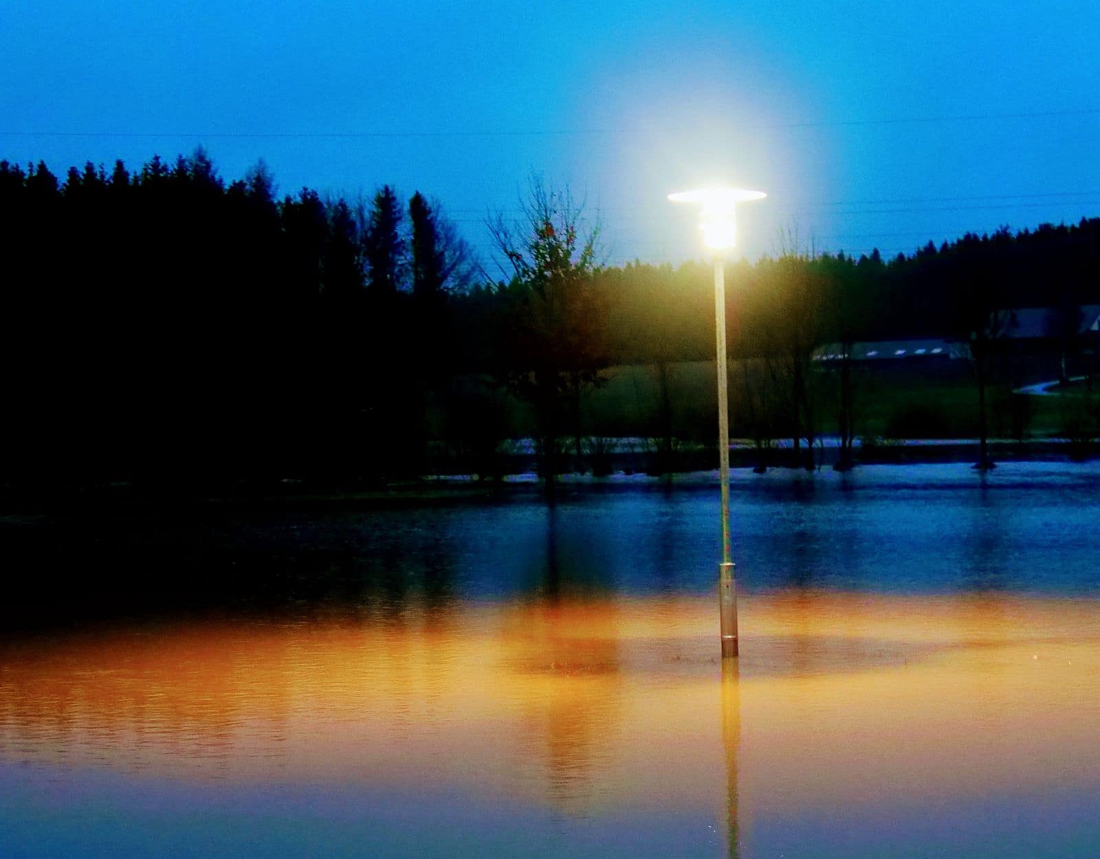Karl Gutmann aus Seedorf (!) hat für die NRWZ am Abend dort fotografiert – und eine traumhafte Szenerie festgehalten. Um nicht missverstanden zu werden: Die Lage ist ernst, wir wissen das – aber das Hochwasser bietet auch einen optischen Reiz, und den hat Gutmann meisterlich festgehalten.