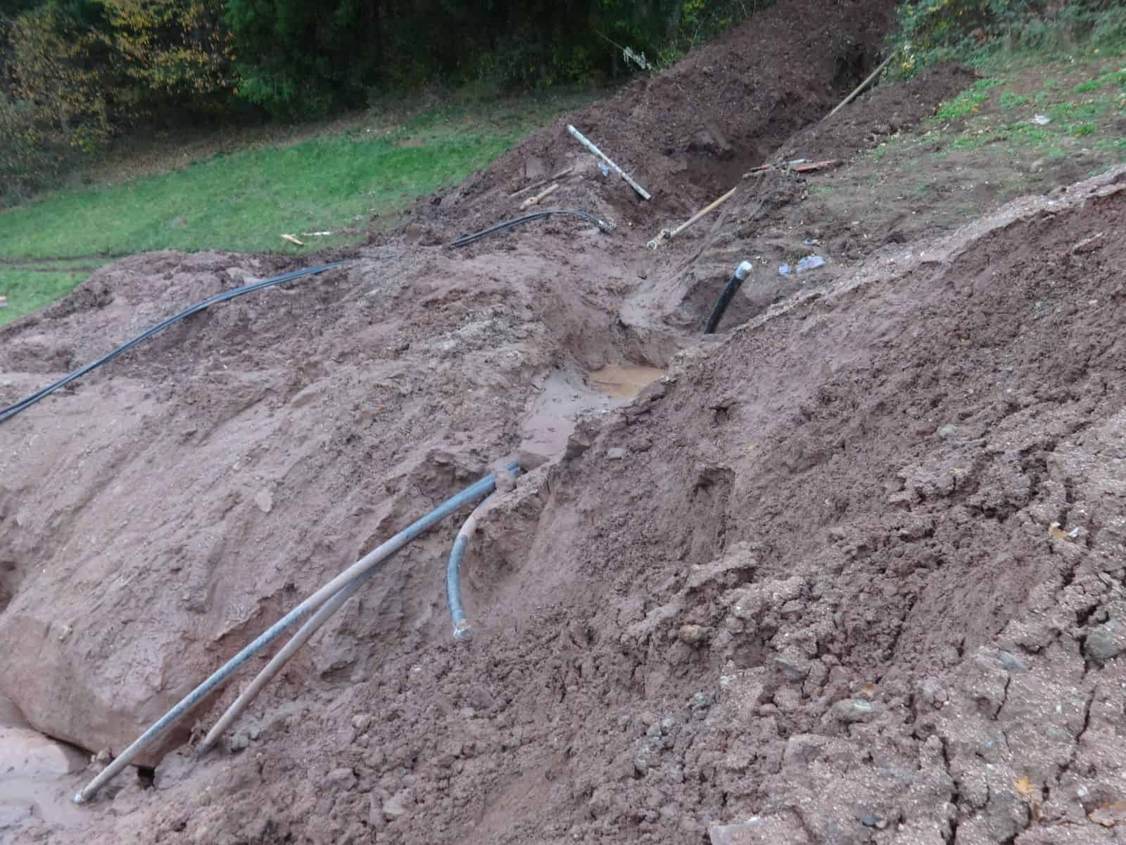 Wenn das Abwasserrohr am Platz ist, soll es über das zweite eingezogene Rohr mit Beton im Fels verpresst werden, erläutert Kopp. So hofft man, die entstandenen Spalten im Fels zu verschließen. „Dann können sich die Brunnen wieder erholen“, hofft Ginter. Die Arbeiten für die Hausanschlüsse würden noch bis ins kommende Frühjahr dauern.