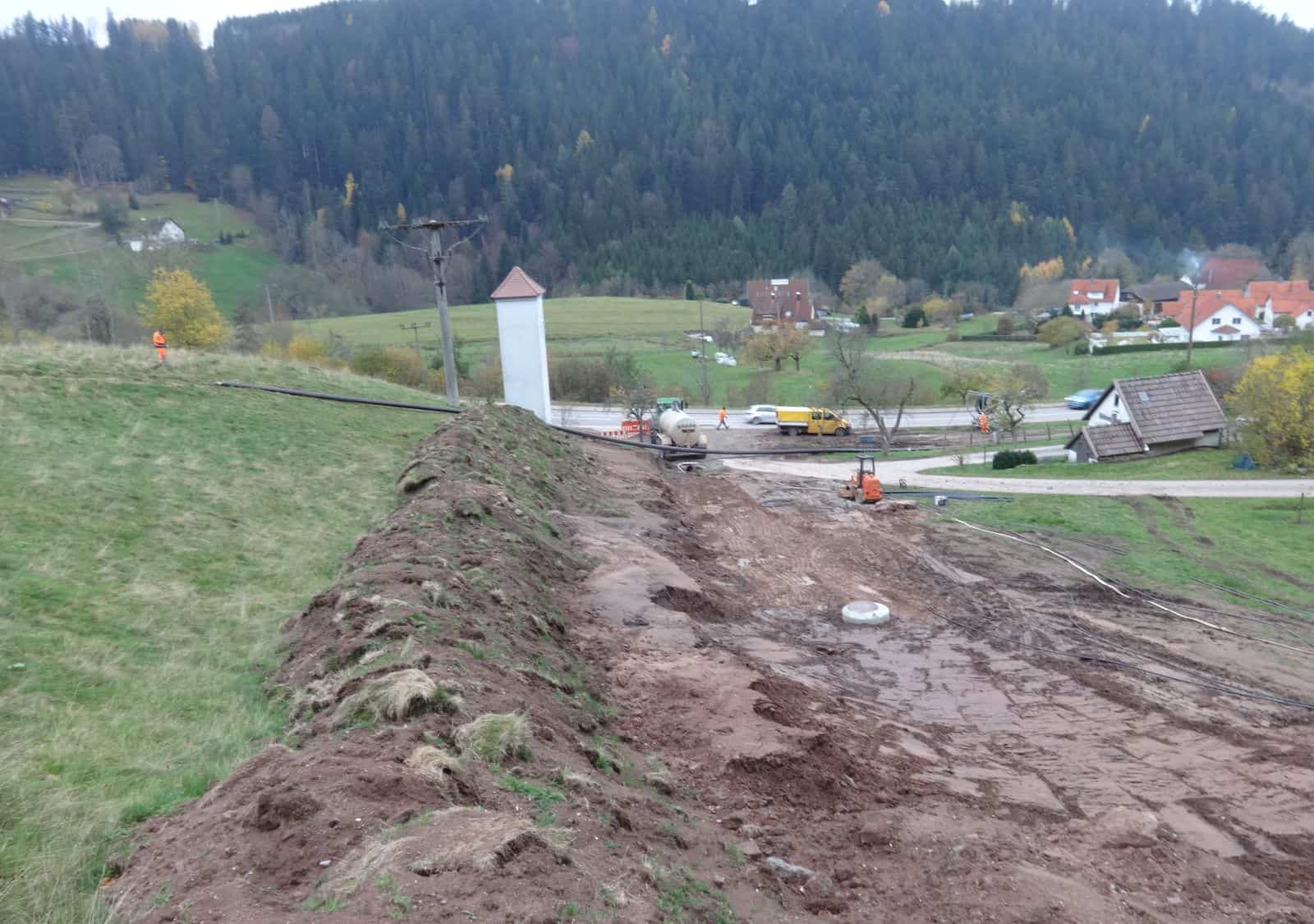 Man sei damit zum ursprünglichen Plan zurückgekehrt, so Konrad Ginter, Abteilungsleiter Tiefbau bei der Stadt Schramberg. Beim Bohren des ersten Loches waren die Bauarbeiter auf klüftiges Gestein gestoßen. Das Schmiermittel Bentonit war dann nicht, wie geplant, im Bohrloch zurück geströmt. Stattdessen hatte es den „Weg des geringsten Widerstandes“ gesucht und war in eine Quelle gelangt. Auch die Stadtwerke waren betroffen. Sie mussten eine ihrer Quellen im Kirnbachtal vom Netz nehmen (wir haben berichtet.)