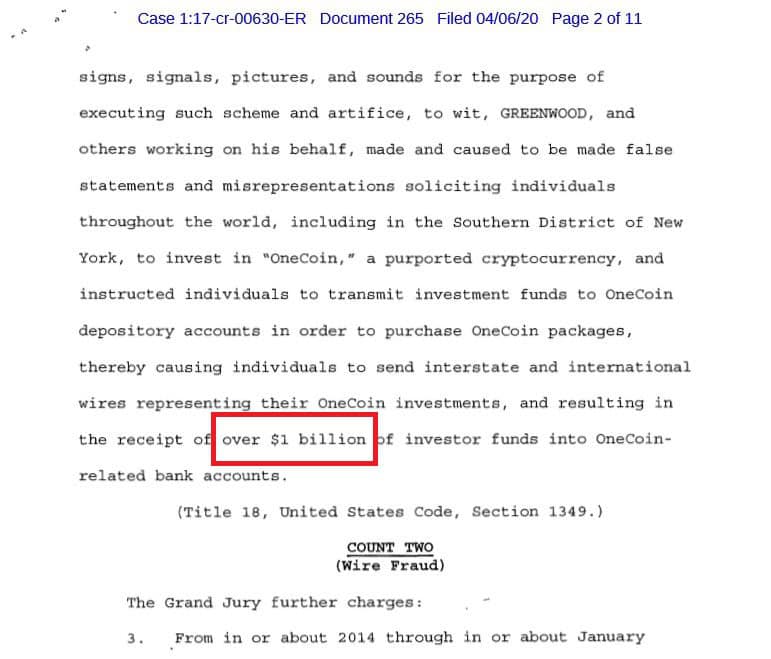 Der Grund: Gegen einen weiteren OneCoin-Boss hat die Staatsanwaltschaft Anklage unter anderem wegen Überweisungsbetrugs („Wire fraud“), Verschwörung zum Überweisungsbetrug und Geldwäsche erhoben: