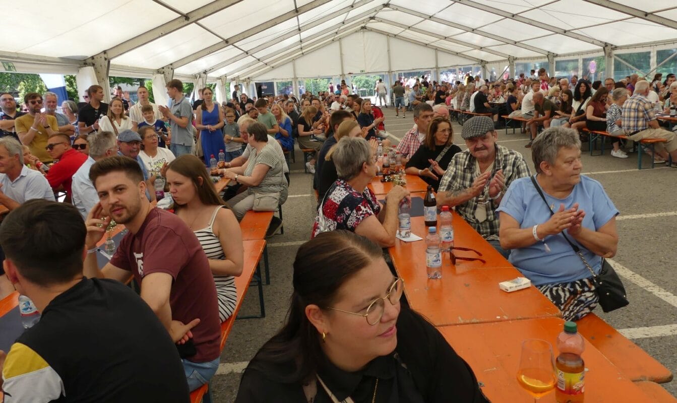 Neben Sprudel und Bier, Apfelschorle und Cola konnten die Besucher auch einen „Hugo“ oder einen Espresso probieren. Klar, auch ein Wagen mit „Gelato“ stand in der Nähe des Kinderbereichs. Im L-förmigen Festzelt musizierte die „Herrenmusik“, dazwischen legte ein DJ auf.