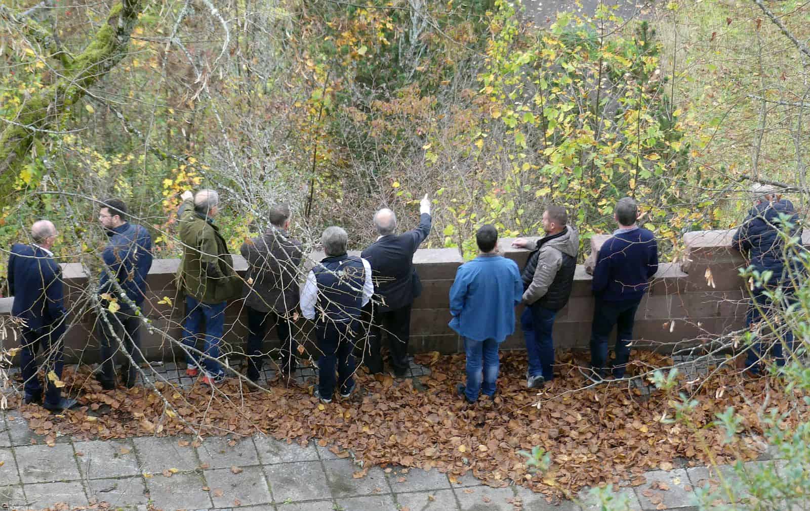 Nach der Begrüßung besichtigten Gemeinderätinnen und Räte und die übrigen Gäste Gut Berneck und die Außenanlage mit dem „Burgfried“ und dem unteren Eingang zu Gut Berneck. Mit Blick auf den unteren Teil des Parks erläuterte Steim: „Uns gehören noch zwei Meter unterhalb der Mauer.“