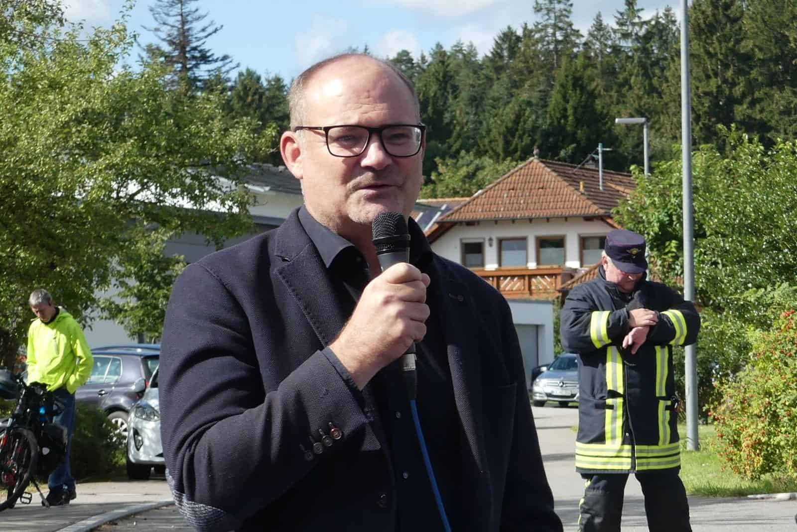 Für den aus Termingründen verhinderten Landrat Wolf-Rüdiger Michel war Finanzdezernent Gerald Kramer aus dem Landratsamt gekommen. Er erinnerte an den ersten Spatenstich am 31. Mai 2022. Die Einweihung heute sei „ein noch viel freudigeres Ereignis“, denn seit dem Spatenstich seien noch etliche Probleme zu lösen gewesen. Der jetzt erfolgte Lückenschluss habe auch überregionale Bedeutung, so Kramer.