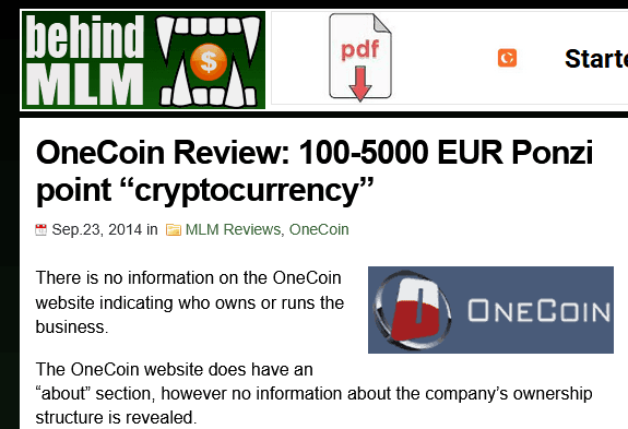 Dabei hatte sie damals schon zwei Jahre lang mit der frei erfundenen Kryptowährung die ersten Milliarden gescheffelt und Millionen naive und auch geldgierige Menschen weltweit abgezockt. Ab September 2014 gab es im Internet schon zahlreiche kritische Kommentare zu OneCoin. Fazit auf BehindMLM zu OneCoin damals: „…those running the scheme will simply disappear“, also, die, die das Ding betreiben, werden einfach verschwinden. Es waren Sebastian Greenwood und Ruja Ignatova.