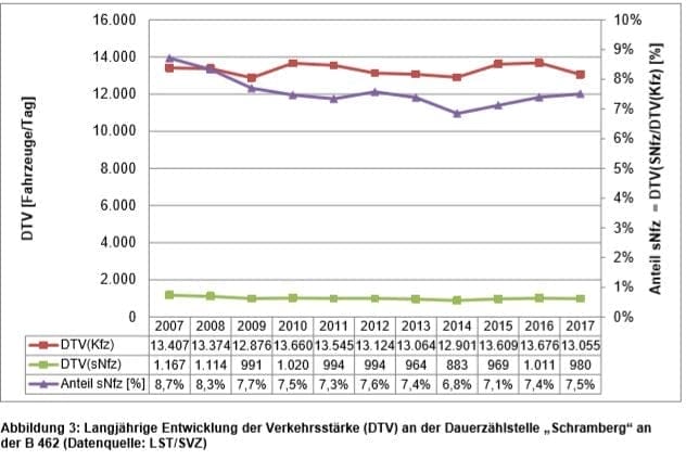 Tatsächlich ist die Zahl der Fahrzeuge seit Beginn der Zählungen im Jahr 2007 konstant bei etwa 13.000 Fahrzeugen geblieben. Weshalb sich nun der Trend plötzlich so stark verändern sollte, verraten die Planer nicht.