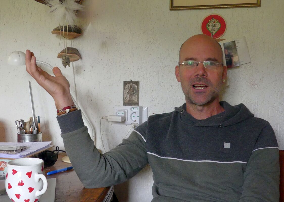 Schramberg. Seit zehn Jahren lebt der Paläotechniker in seinem Häuschen im Raustein und erforscht die Lebensweise der Menschen in der Steinzeit. Mit Werkzeug aus Feuerstein und Knochen baut er Schlitten nach, Waffen oder auch Haushaltsgegenstände. Er schneidert sich Kleidung und bereitet sich Mahlzeiten zu. In Kursen, Vorträgen und an Museen vermittelt er sein Wissen.