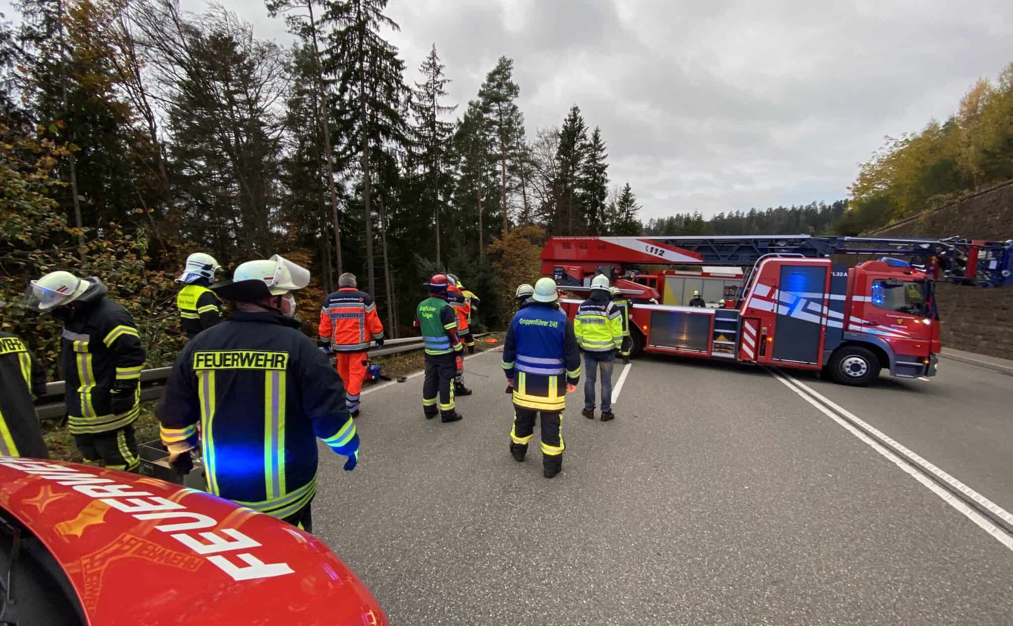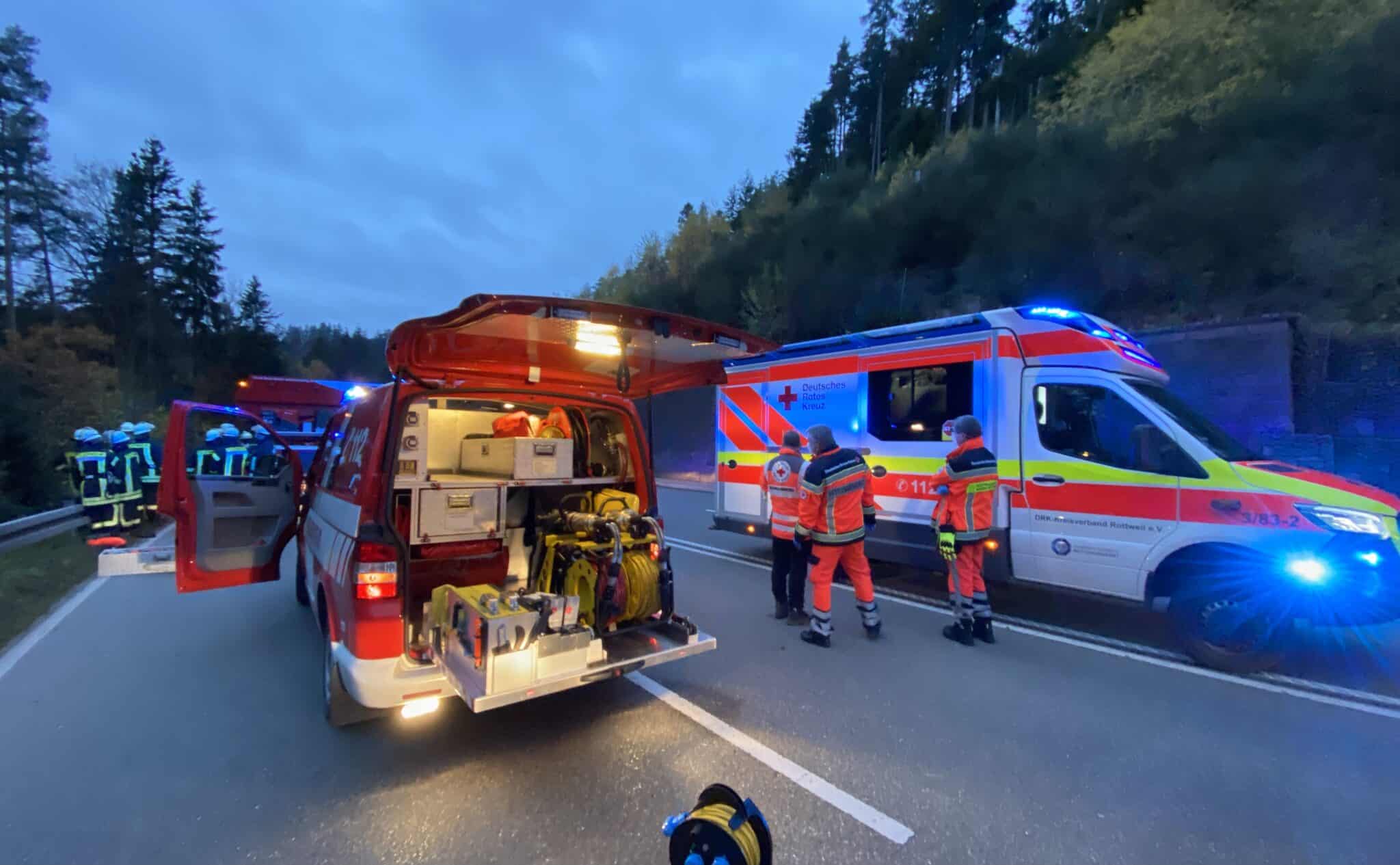 Für die aufwendigen Bergungsarbeiten musste die B 462 zwischen Schramberg und Sulgen gesperrt werden. Die Polizei will allerdings schnellstmöglich zwei der vier Fahrspuren freimachen.