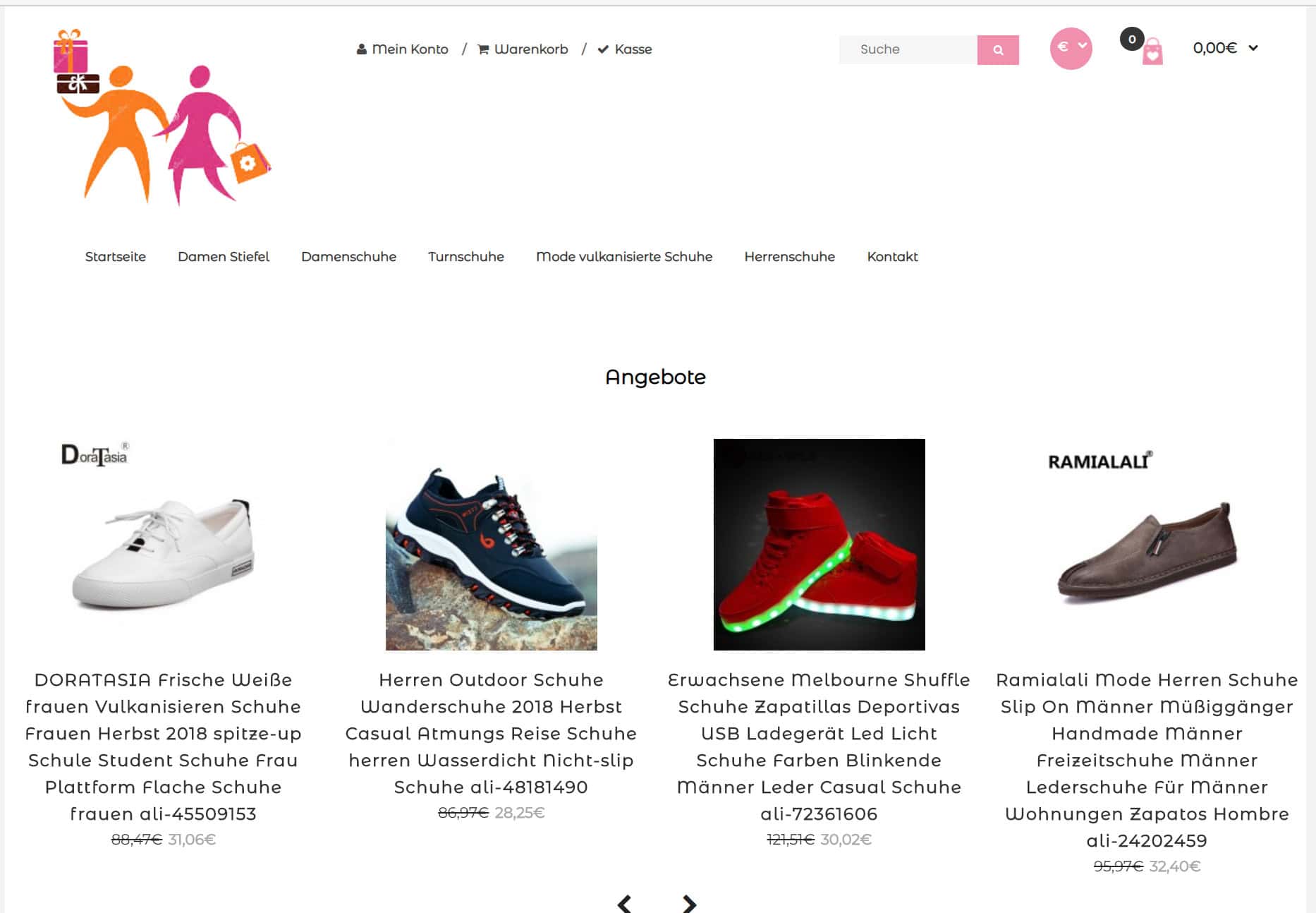 Es ist ein Shop ohne Impressum, der deutliche Anzeichen für Nepp aufweist – so sind etwa ausnahmslos alle angebotenen Produkte im Preis teils massiv herabgesetzt. Und manche tragen so abenteuerliche Namen wie „Männer der Wohnungen Schuhe Sommer Leder Männer Müßiggänger Casual Männer Oxfords Schuhe Atmungsaktiv Slip-On Männer Fahren Schuhe Calzado hombre Sex3 ali-44284273“.