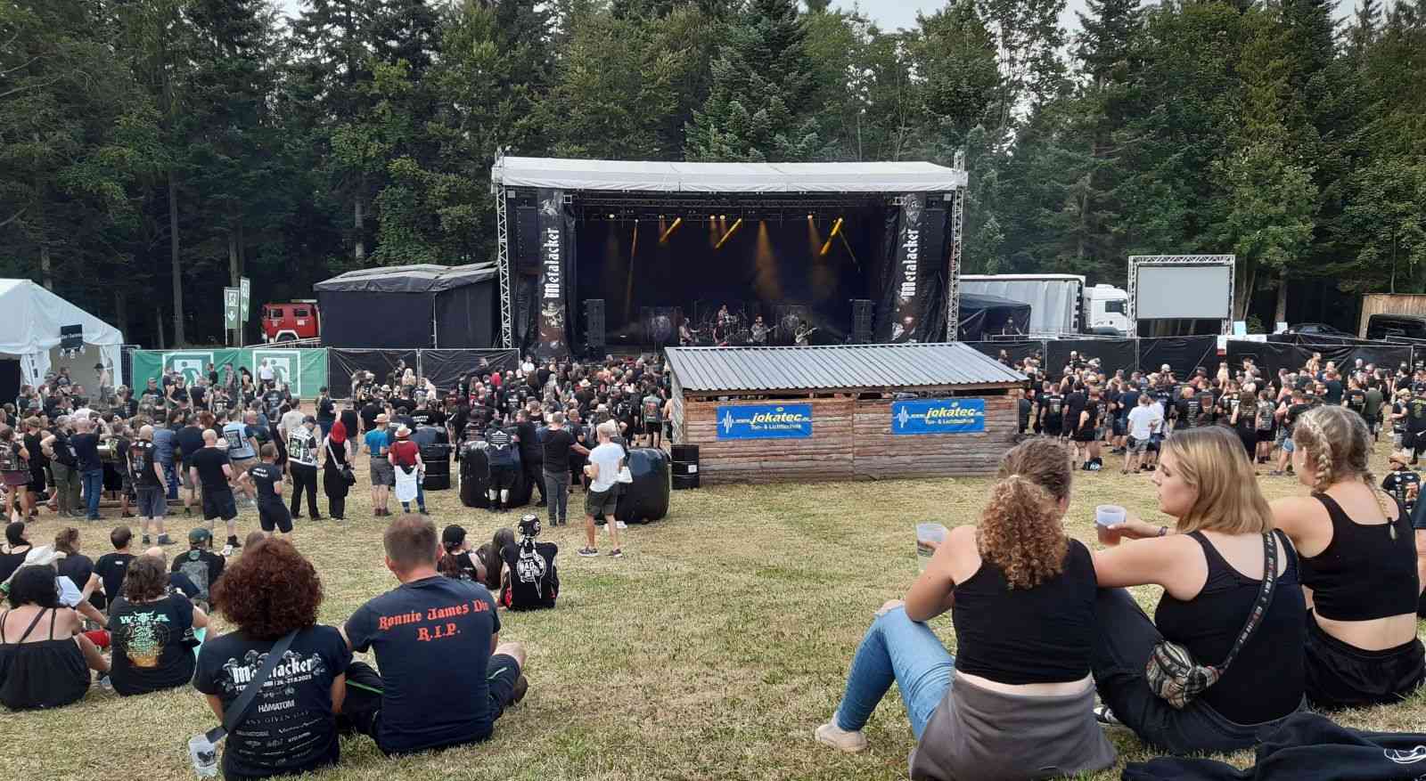 Die Location im Trombach bewährte sich einmal mehr durch sein abfallendes Gelände, das für die ruhigeren Zuhörenden Rückzugsmöglichkeiten im oberen Bereich bot. Unter der Bühne waren die Metalfans dicht gedrängt und auch der ein oder andere „Moshpit“ war zu sehen.
