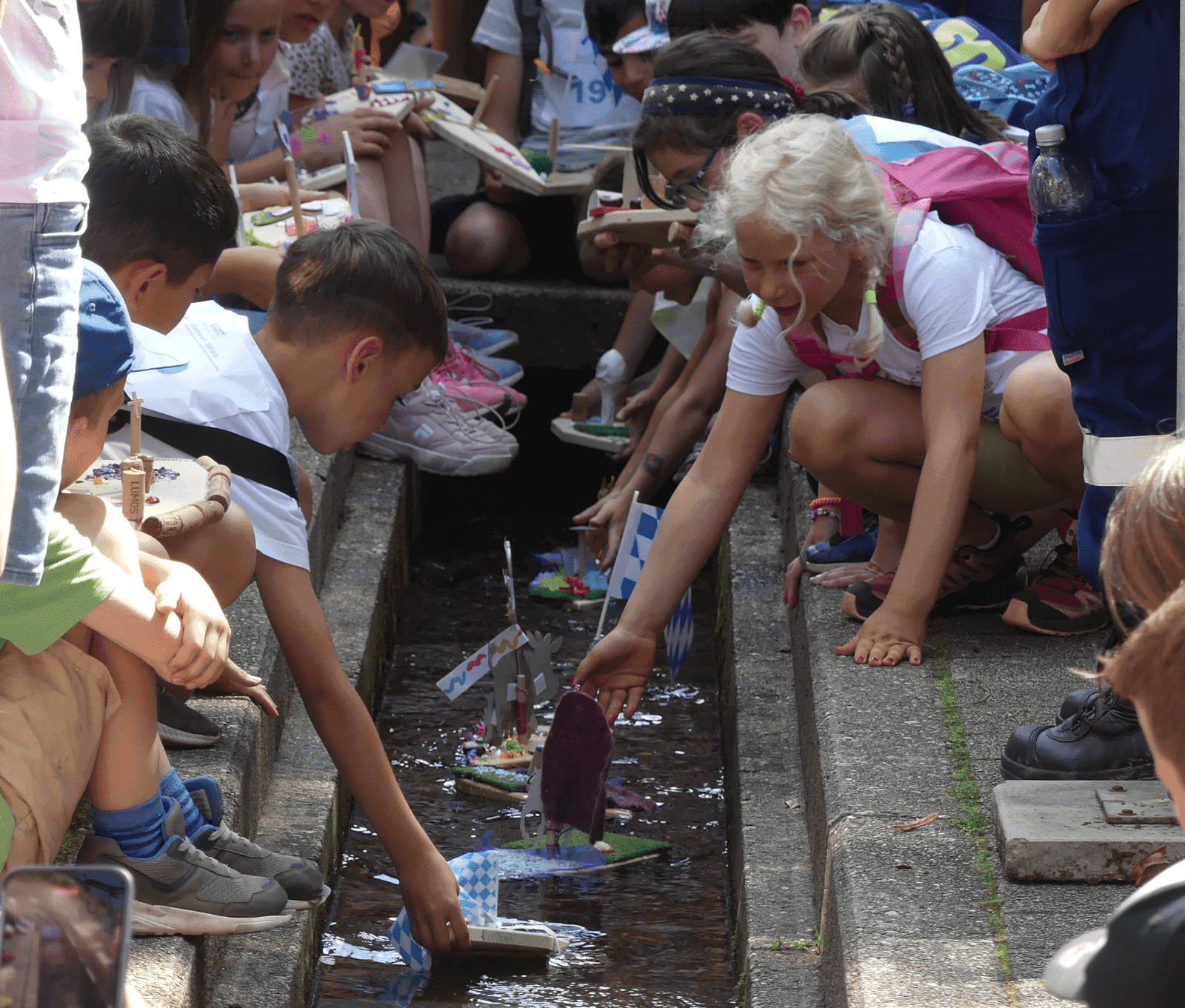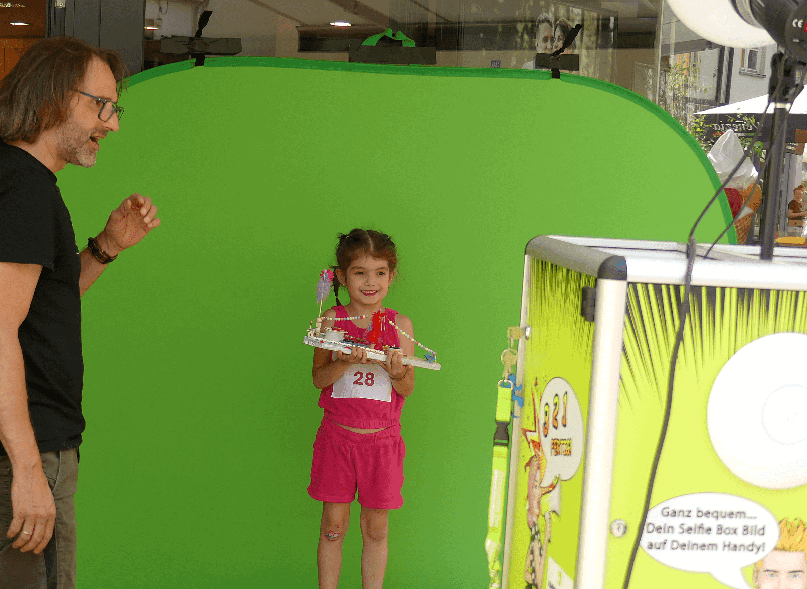 Martin Kasenbacher machte Bilder von den Kindern mit seiner Selfie-Box, am Rathausplatz unterhielt Wolfgang Tessari die Zuhörerinnen und Zuhörer, ein Crepe-Mobil wartete auf Hungrige und Kinderschminken war ebenfalls im Angebot. Der HGV spendierte überdies allen Kindern einen Muffin. Rundum gelungen auch die 19. Mini-Bach-na Fahrt.